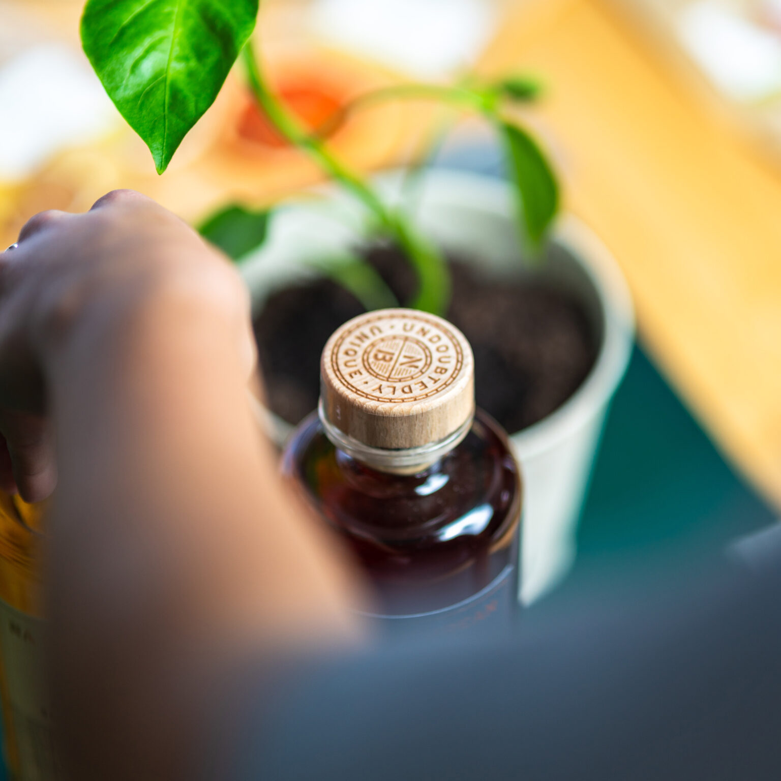 The end product is two bottles of the same spirit with different personalities and characteristics. Every aspect of the packaging design for Na Bràithrean reiterates the high-quality liquid inside. From choosing the premium bottle through laser-engraved, natural wood stopper up to beautiful, cotton label stock finished with copper foil and tactile varnish.