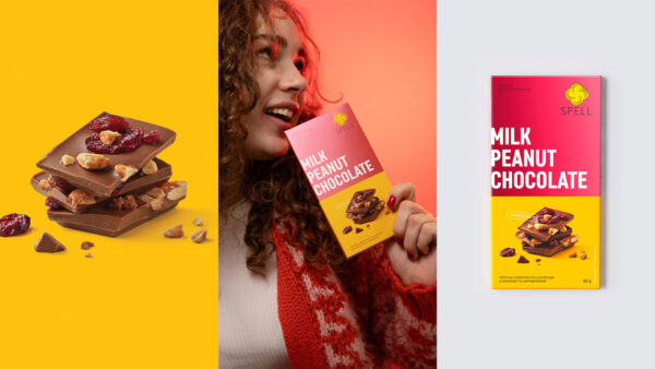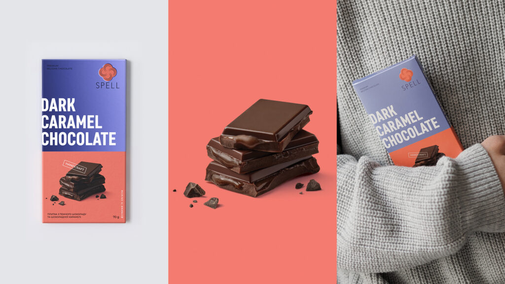 What makes you energized from the first contact, even before the chocolate hits your hands? Of course, it’s color. Instead of using the typical mass-market techniques of chocolate bar design, we focused on vibrant colors and driving flavors as a sign of generous love for chocolate and its fans. No dominant chocolate background, a romantic vibe, and gradient blurs came on the scene.