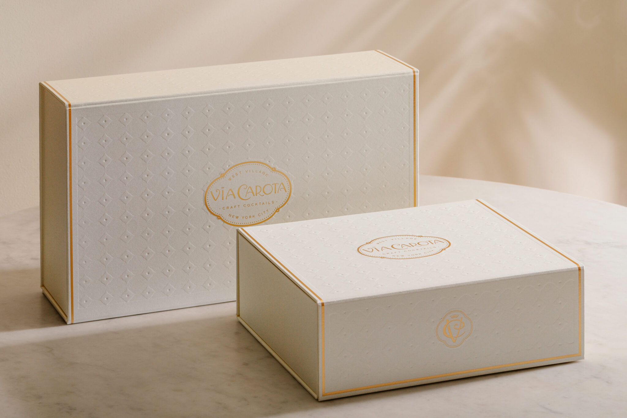 Via Carota Craft Cocktails is a luxury line of ready-to-pour cocktails, created by the team behind the award-winning NYC West Village restaurant of the same name. These cocktails embody the spirit of the much-lauded trattoria, offering at-home entertainers a taste of their refined recipes in bar cart-worthy packaging. Porter is proud to have helped complete the brand’s premium e-commerce offering with a suite of custom-made magnetic rigid boxes and mailers.