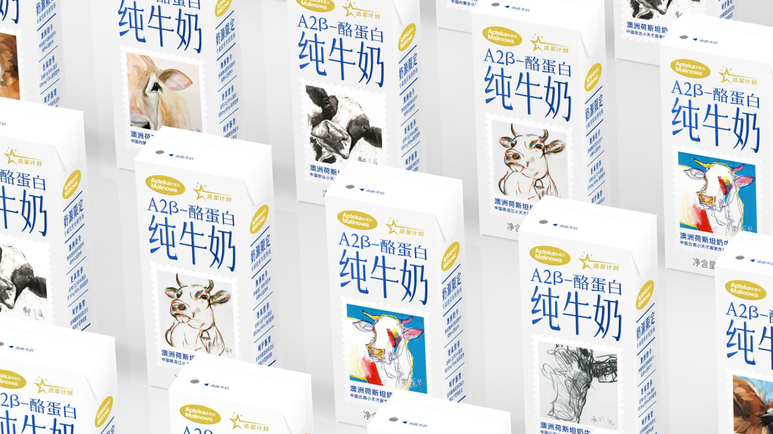 This is a pure milk product suitable for young children. In the current social and educational environment, to encourage more parents to respect their children’s artistic talent, we have cooperated with young talented painters from several dairy farming cities in China to create six illustrations about cows: in their hearts, give What are the cows that they provide the nutritious milk like?