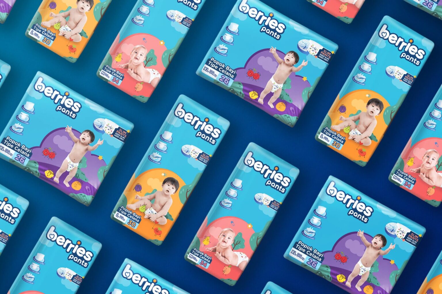 Then we applied the visual identity and developed it into a mastergraphic element that can be applied to Berries Pants’ collateral, such as flyers, roll-up banners, and so on. These visual implementations are then made into specific guidelines to give the brand itself a consistent and lively look. From fruit-inspired character illustrations to a playful and vibrant mastergraphic approach, we created their branding that is visually expressive of the imaginative world of babies.