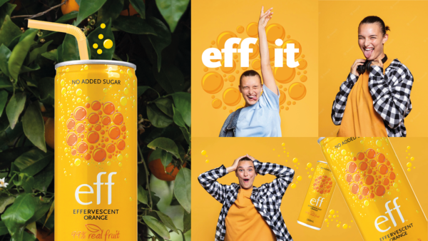 With a product focused led execution, the solution was always in its description. Bubbly juice for effervescent bubbly people. Underpinned with strong orange semiotics, eff is perfect for a standalone drink or as a bar mixer. Eff it up!