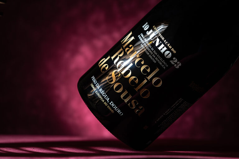 - Portugal the bottle, engraved at 360º, represents our flag with the central element, the shield, highlighted, with the surrounding lines that evoke the Douro and its terraces, as well as the horizontal lines where 2 dates are marked: -1143, date of the foundation of our country and celebration of the Treaty of Zamora, between D Afonso Henriques and Afonso VII of León and Castile, which recognizes the legal status of Portugal as an independent kingdom – 1880, date of the first reference to the festive character of the 10th of June by royal decree of D Luís.