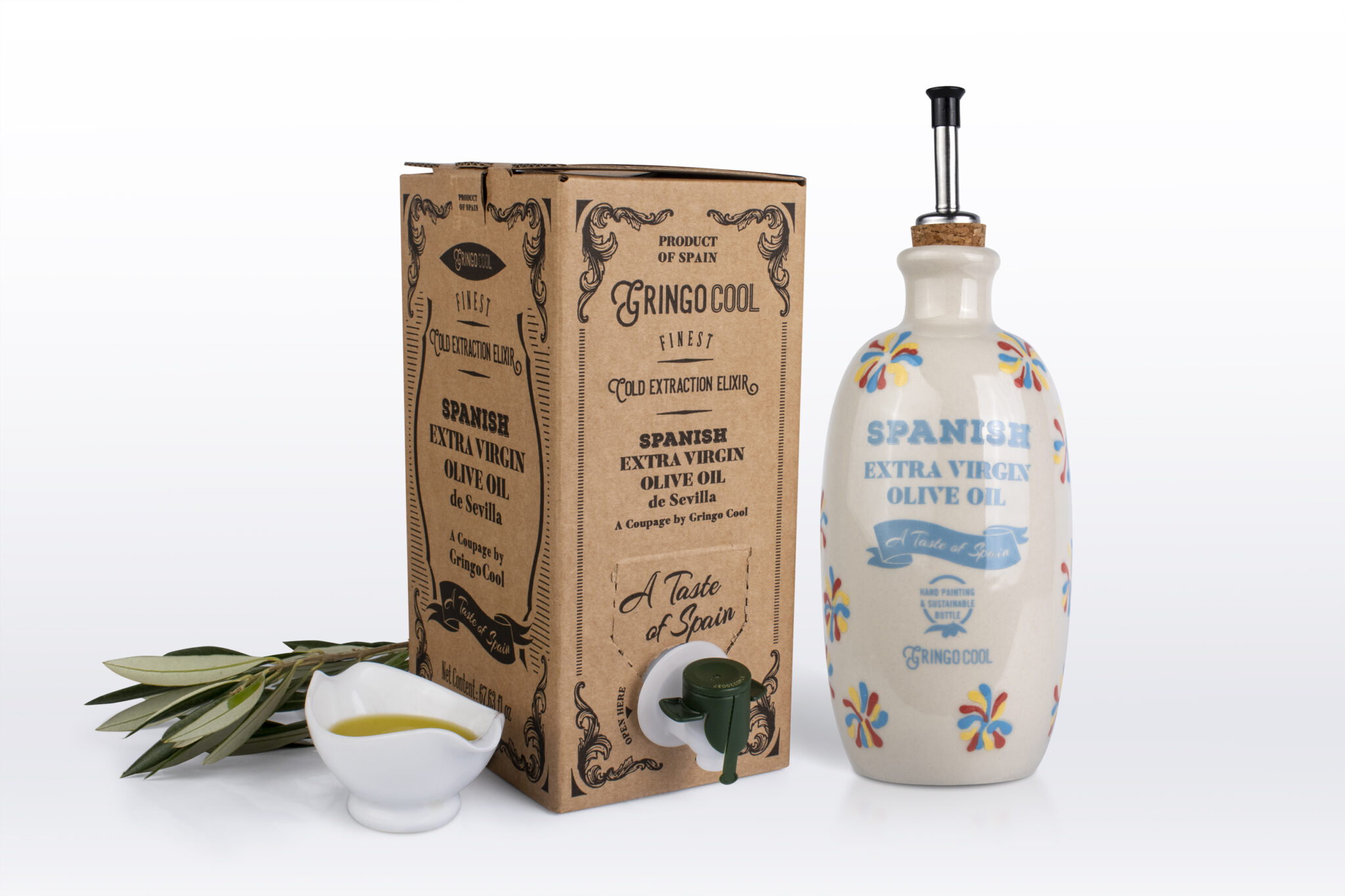 The concept of reusable packaging is gaining popularity among consumers who are increasingly aware of the health of our planet. Gringo Cool presents a reusable packaging for its olive oils, the oil can. These are made by local artisans in Spain, who paint them in a completely handmade process.