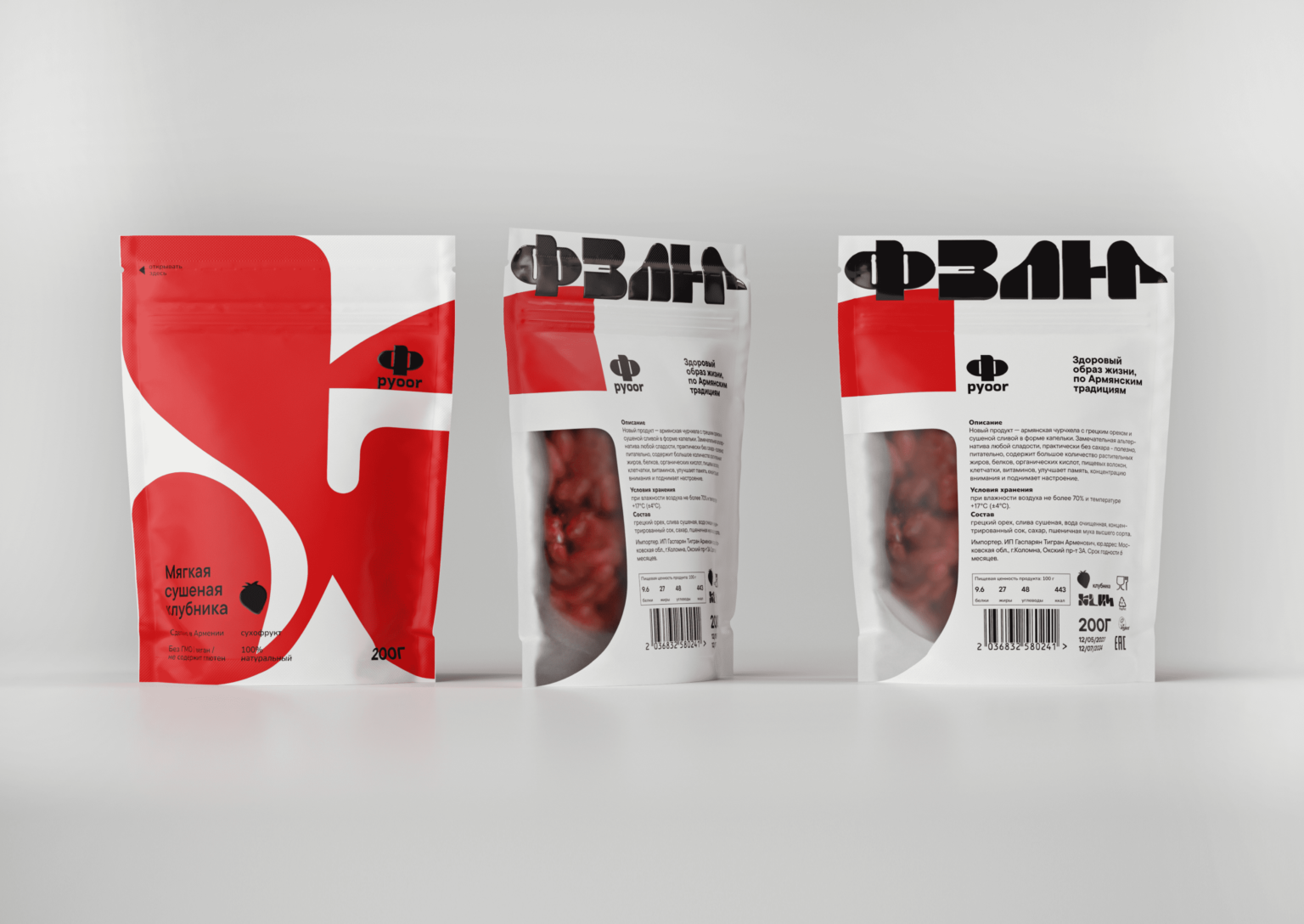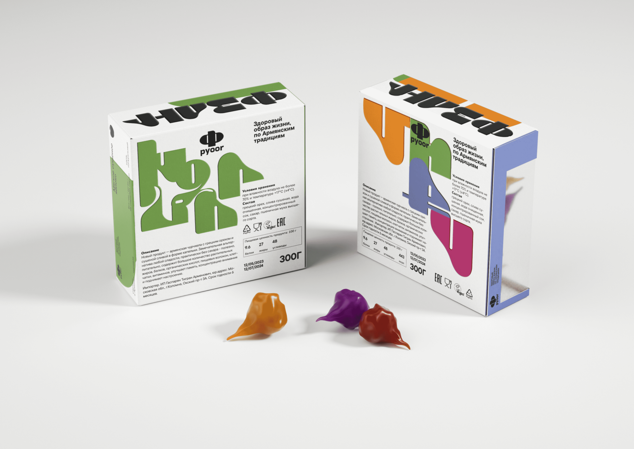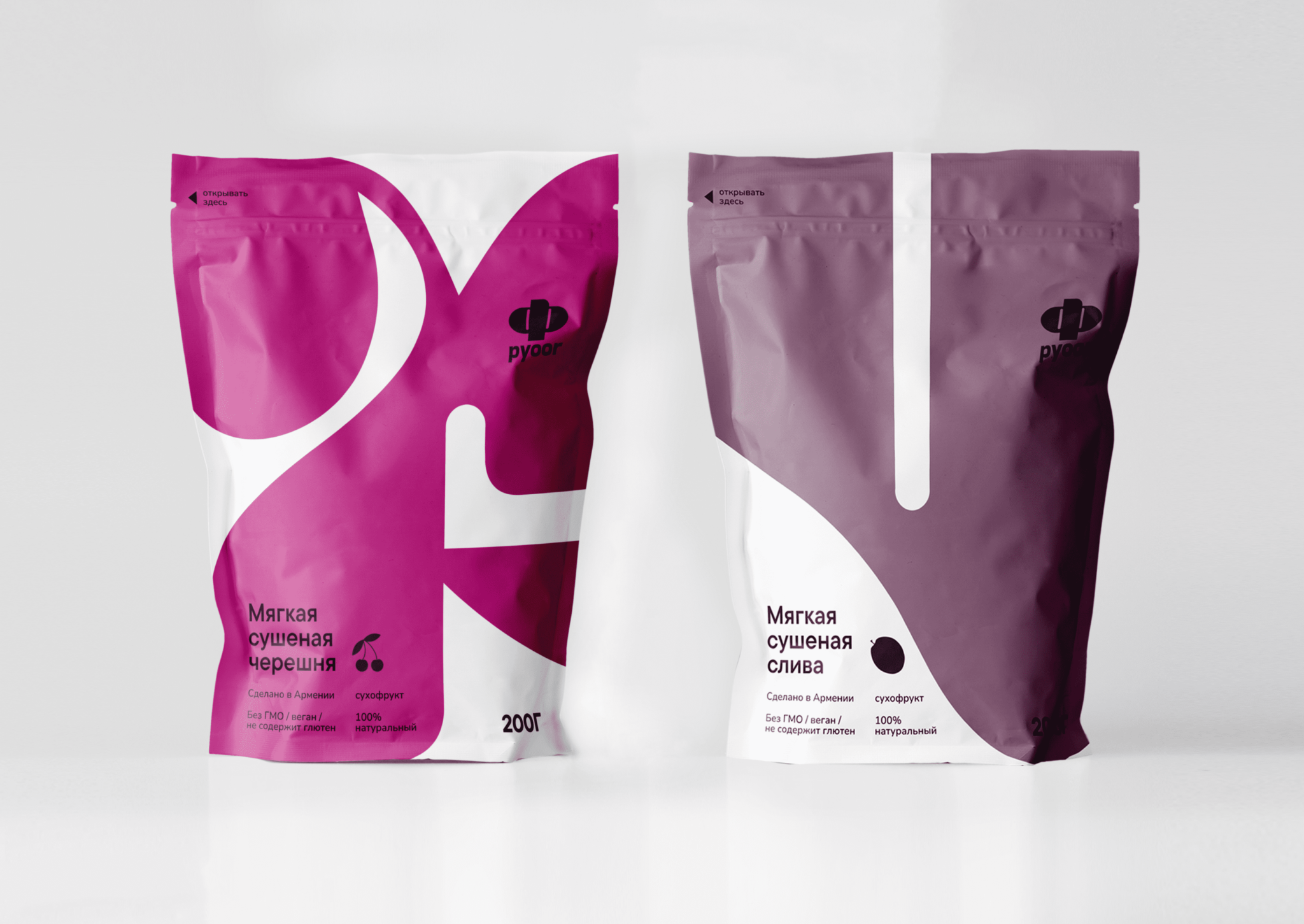 The meaning of the brand name Pyoor was taken from the word pure’s transcription, which shows the product’s healthiness and cleanness. The Full name of the Armenian Capital letter “P” which is on the logo is, “Pyoor”. Each package displays the first letter of the taste and color.