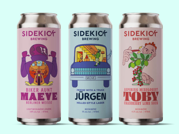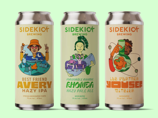 We transformed each beer into a sidekick relationship, co-creating names and details with Sidekick staff. Inspired by friends, relationships, relatives, and acquaintances, the characters are broadly relatable. Everyone can identify a sidekick in their life – someone supportive and fun that always has your back.