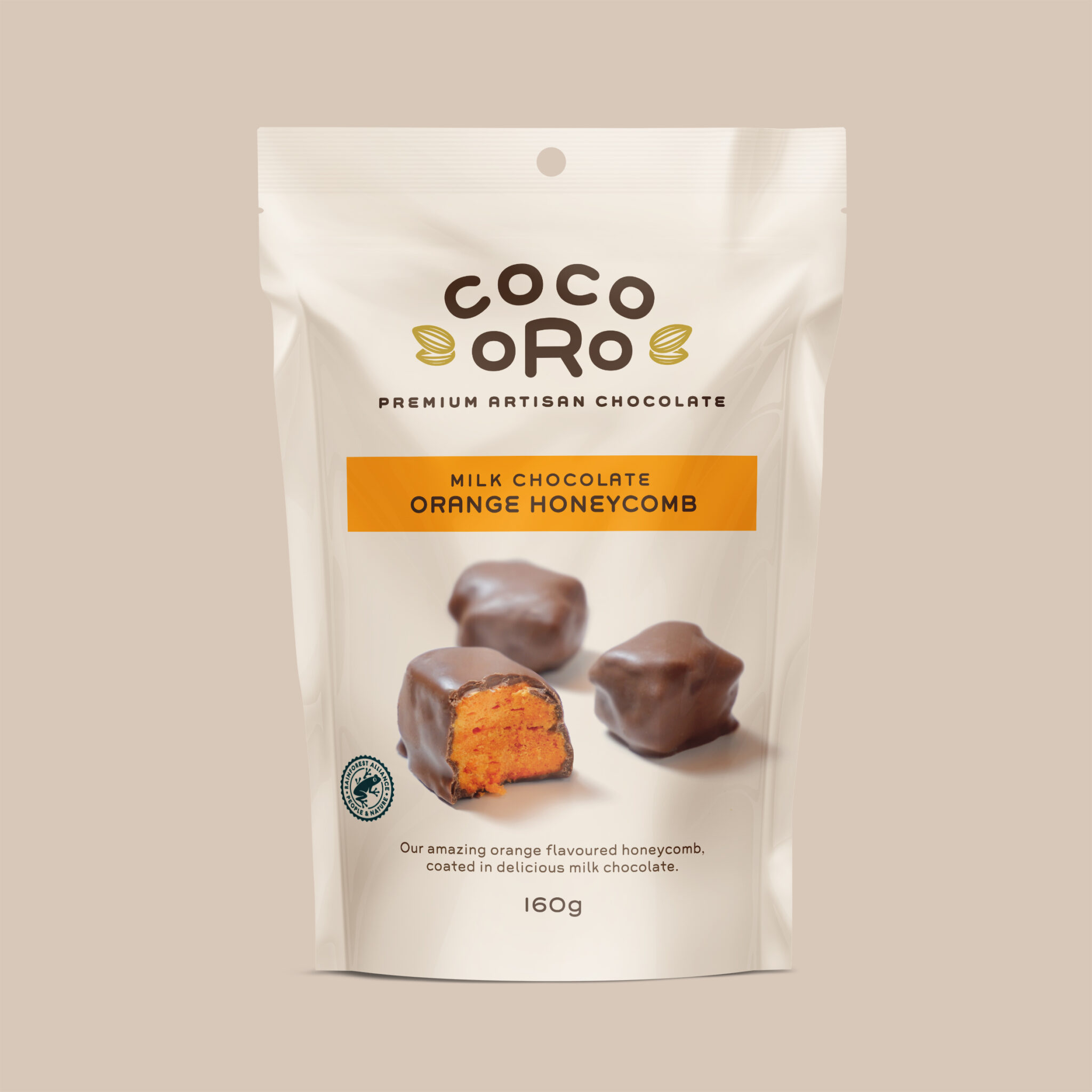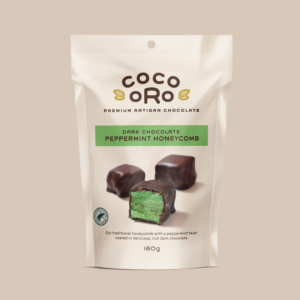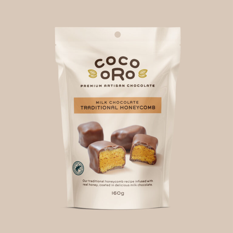 For The Confectionery House’s first foray into premium chocolate we named, then designed the brand mark and packaging for this high-end chocolate honeycomb range. The brand is positioned as an artisan challenger brand – its point of difference is that it’s a contemporary, locally made offer with ethically sourced, high-quality ingredients made using traditional, artisanal methods.