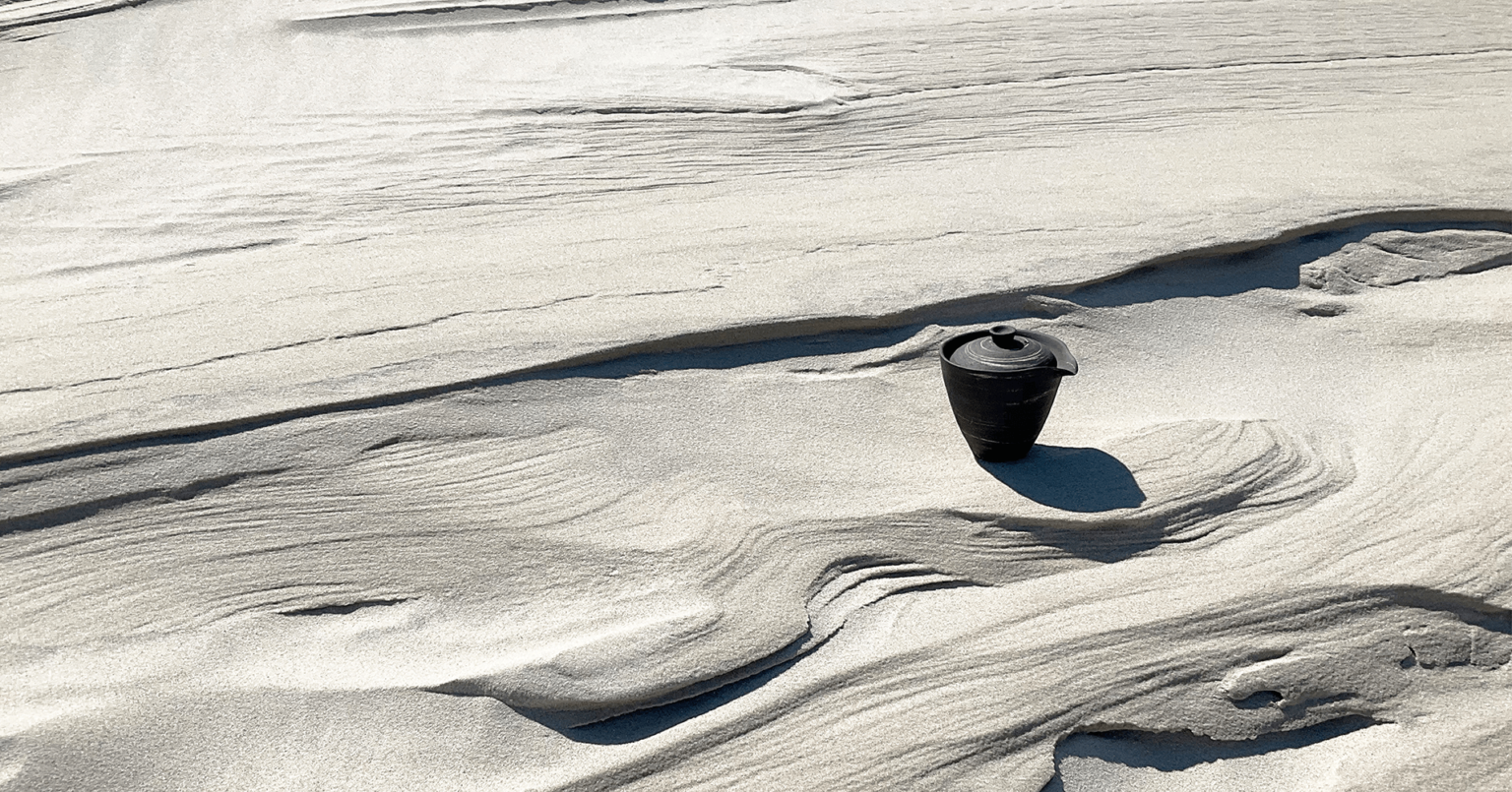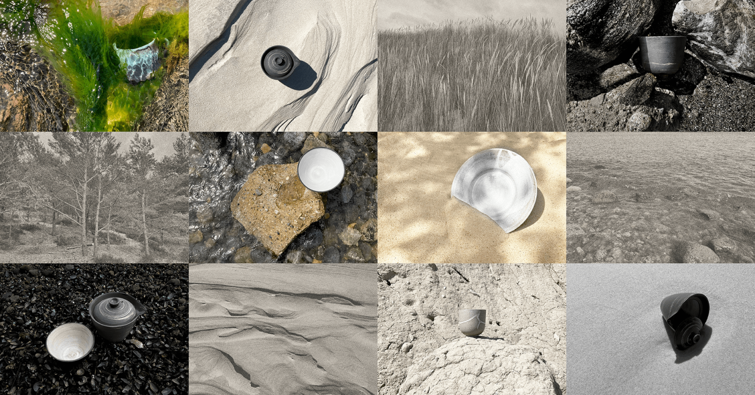 The image world continues to focus on the seaside landscape. The product photography brings handmade pottery into different scenarios, making sure that products and nature become one. The products emerge from the water as created by the nature itself, they unnoticeably merge into the stones and shade on the sand as they would always be a part of its wavy texture.
