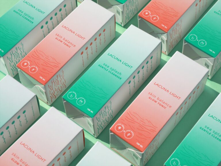 The result is packaging that encapsulates the essence of Lacuna Light—a harmonious fusion of boundless oceanic beauty and the gentle touch of marine ingredients. With every product, customers embark on a sensory journey, connecting with the ocean’s depths and embracing a moment of serenity. The custom wave pattern and thoughtful design elevate the brand’s identity, communicating its dedication to environmental consciousness and creating a lasting impression on consumers. Lacuna Light’s unique packaging stands as a testament to the brand’s ethos and commitment to creating a positive impact on both skin and planet.