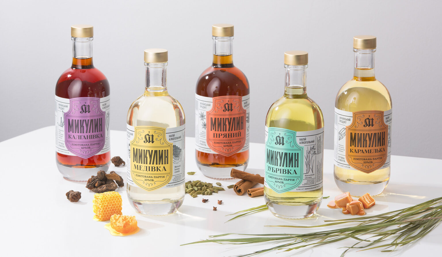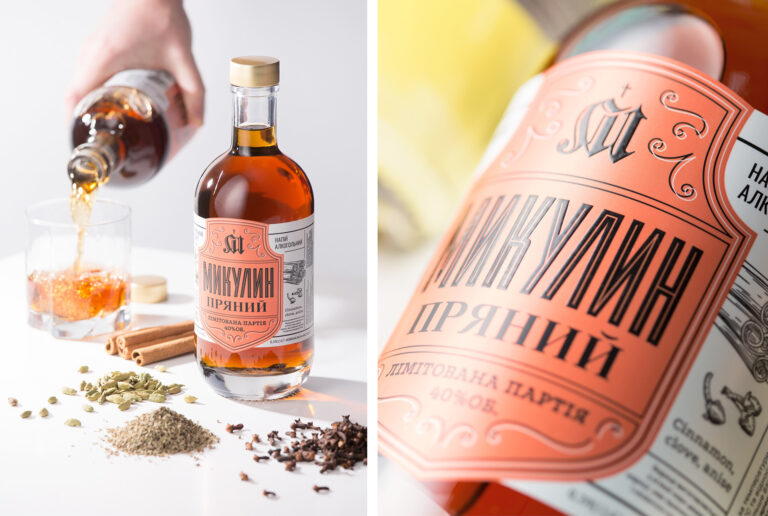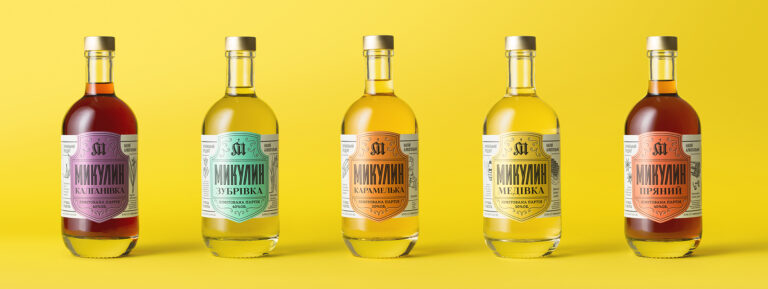 A shield image, used in designing previously developed drinks, served as the basis for the label. We were able to organically display all the necessary additional information around the shield. Main ingredients, depicted by means of catchy illustrations, are displayed right next to the shield. Infusions are a great drink for those who love to have fun and get together with friends, thus we decided to use a variety of bright colored labels for each of the drinks in the series. All of these steps ensure that the infusion bottles pop against the background of other drinks on the shelf, and evoke positive, happy emotions.