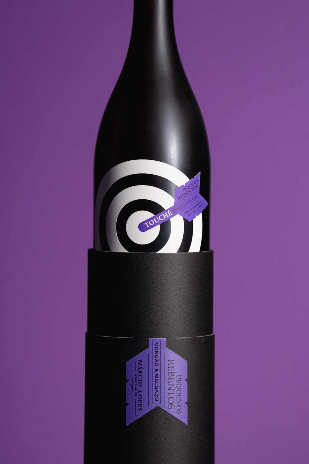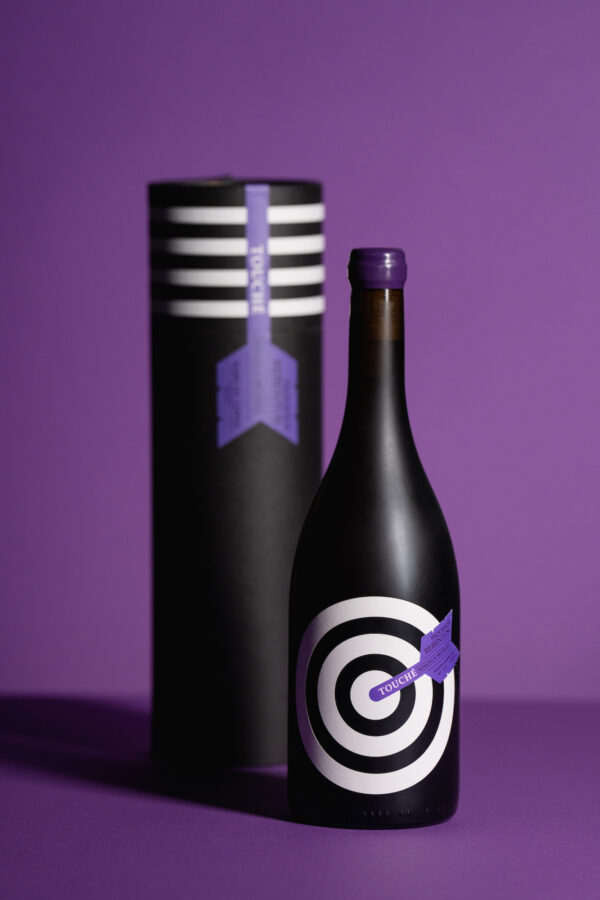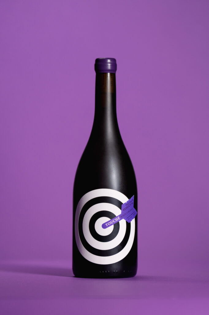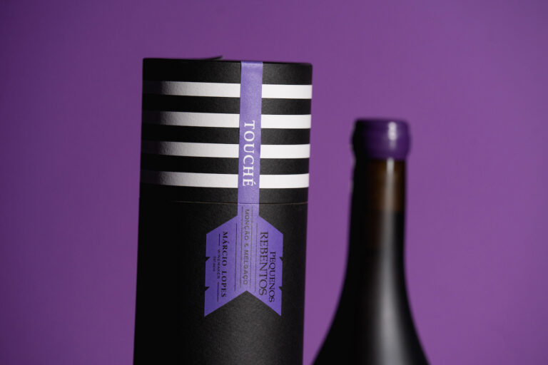 Touché is a special edition of the Pequenos Rebentos brand, by winemaker Márcio Lopes, elected Revelation Winemaker in 2019 by Revista Vinhos. Touché was launched as the “most expensive red vinho verde ever” and is limited to 1000 bottles. All this together required a graphic label that would jump off the shelf.