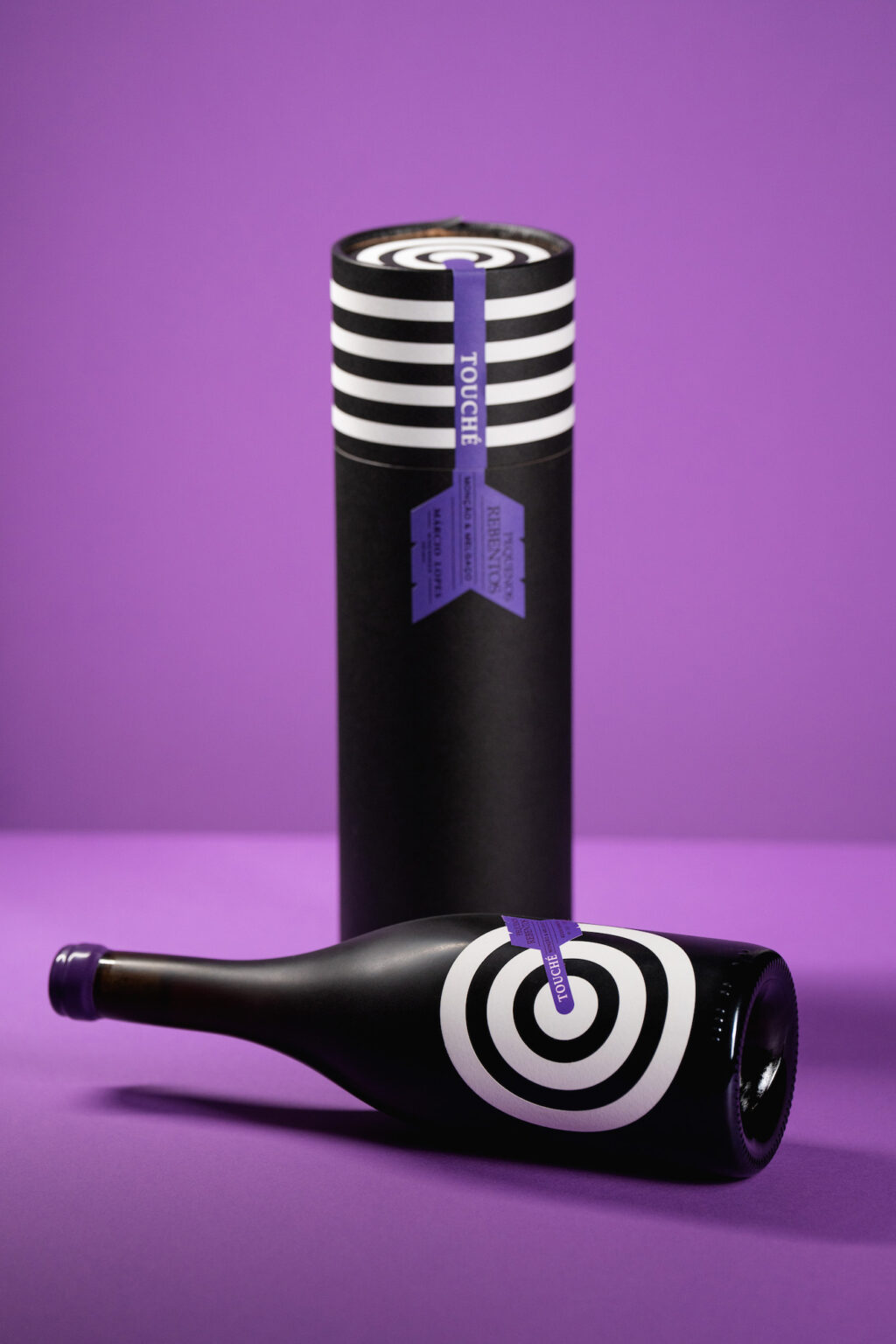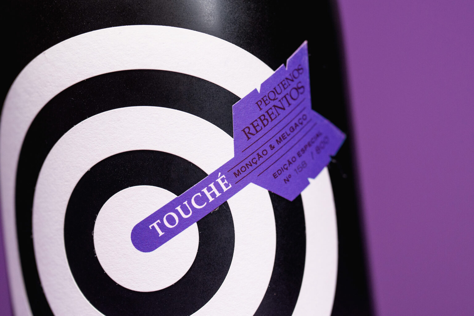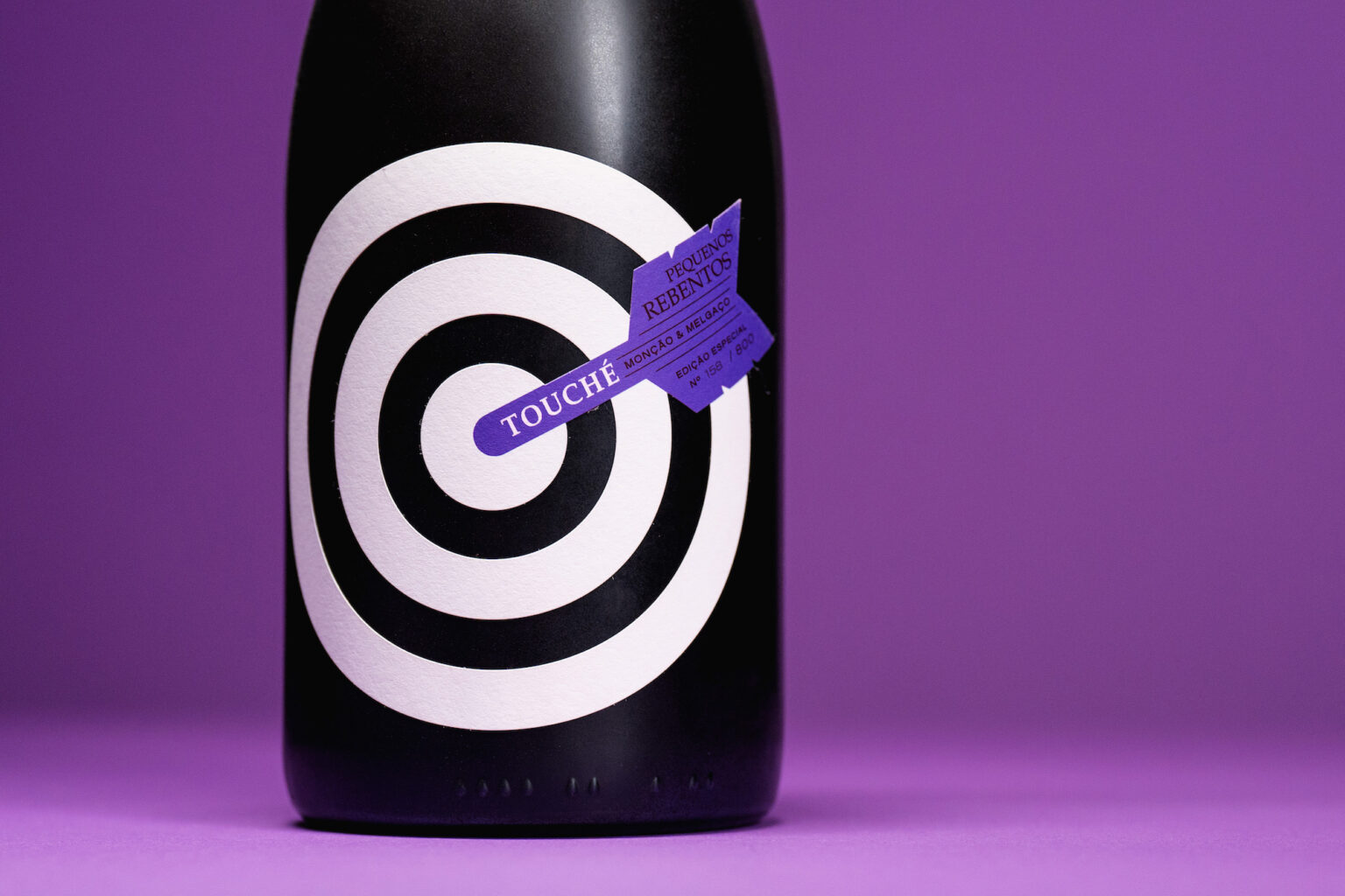 Touché is a special edition of the Pequenos Rebentos brand, by winemaker Márcio Lopes, elected Revelation Winemaker in 2019 by Revista Vinhos. Touché was launched as the “most expensive red vinho verde ever” and is limited to 1000 bottles. All this together required a graphic label that would jump off the shelf.