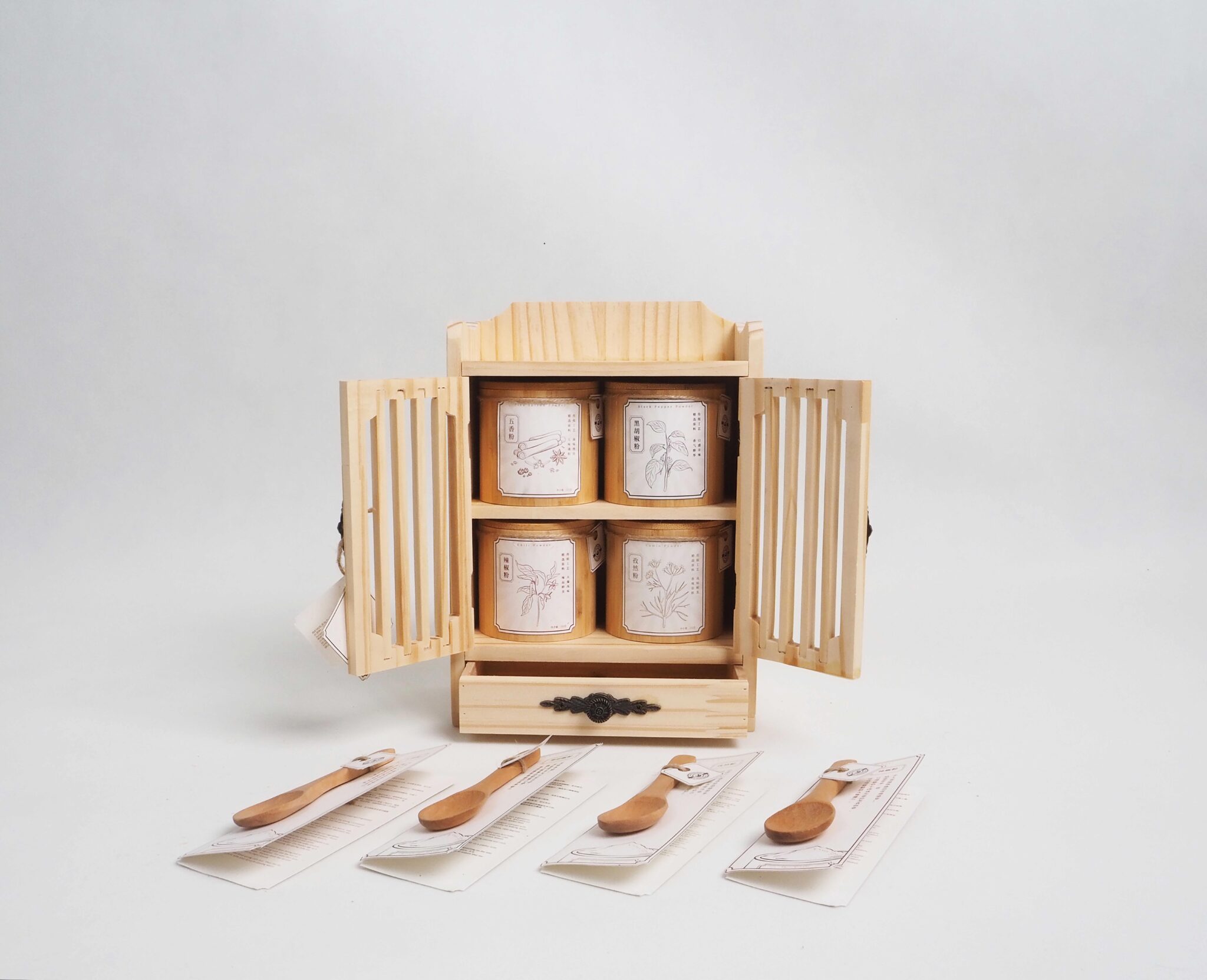 Presenting the student project, the “Asian Fine Food Spice Blend Gift Set,” a heartfelt tribute to the treasured culinary traditions of Malaysian Chinese households. Our primary goal is to seamlessly merge ancient flavors with innovative techniques, providing a taste of comforting familiarity to everyone. The packaging design, reminiscent of a traditional Chinese spice cabinet, gracefully unfolds to unveil layers of captivating aromas and vibrant colors, a true reflection of our rich culinary heritage.