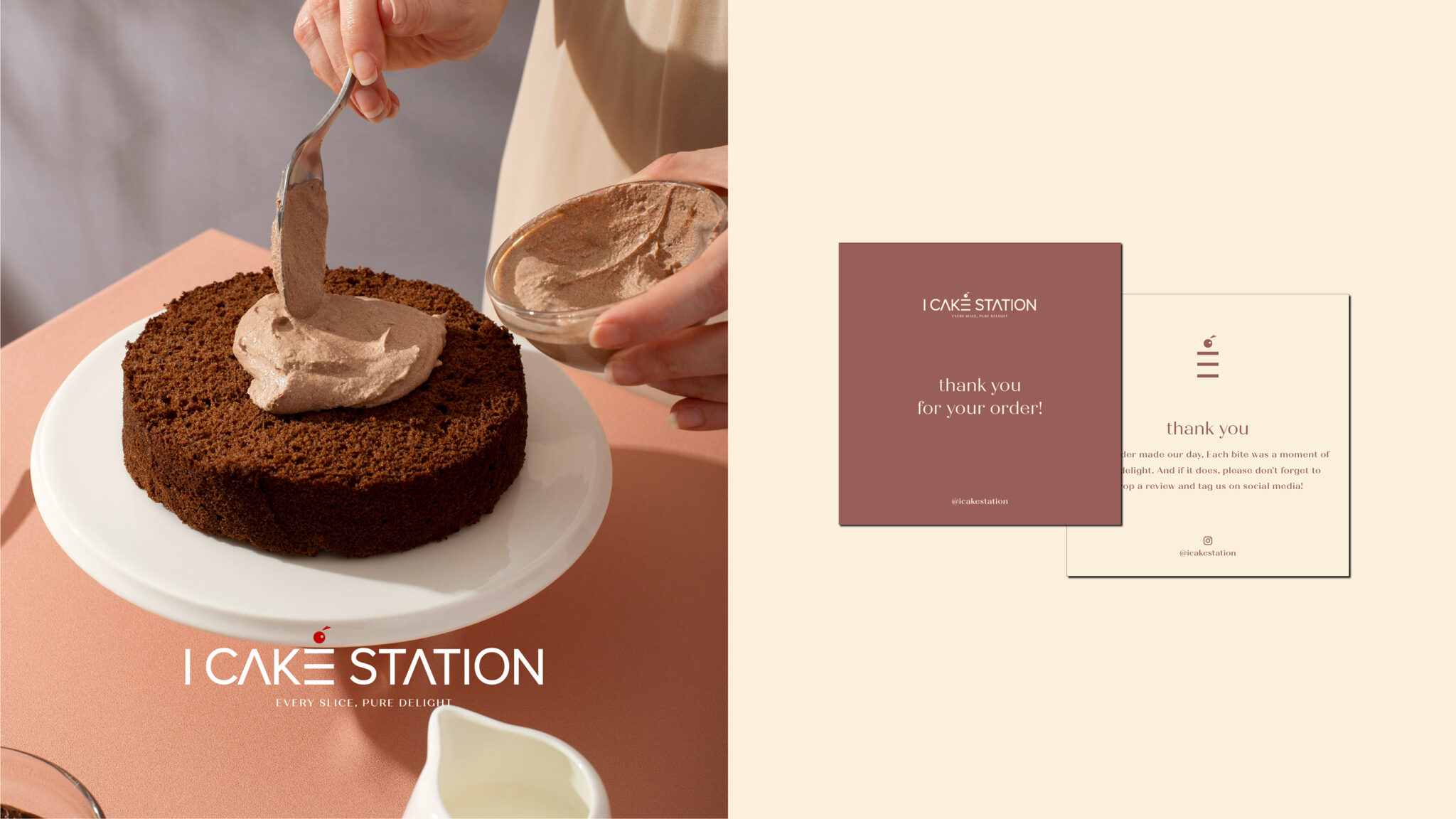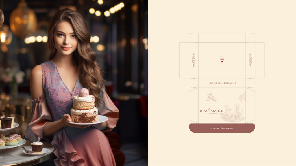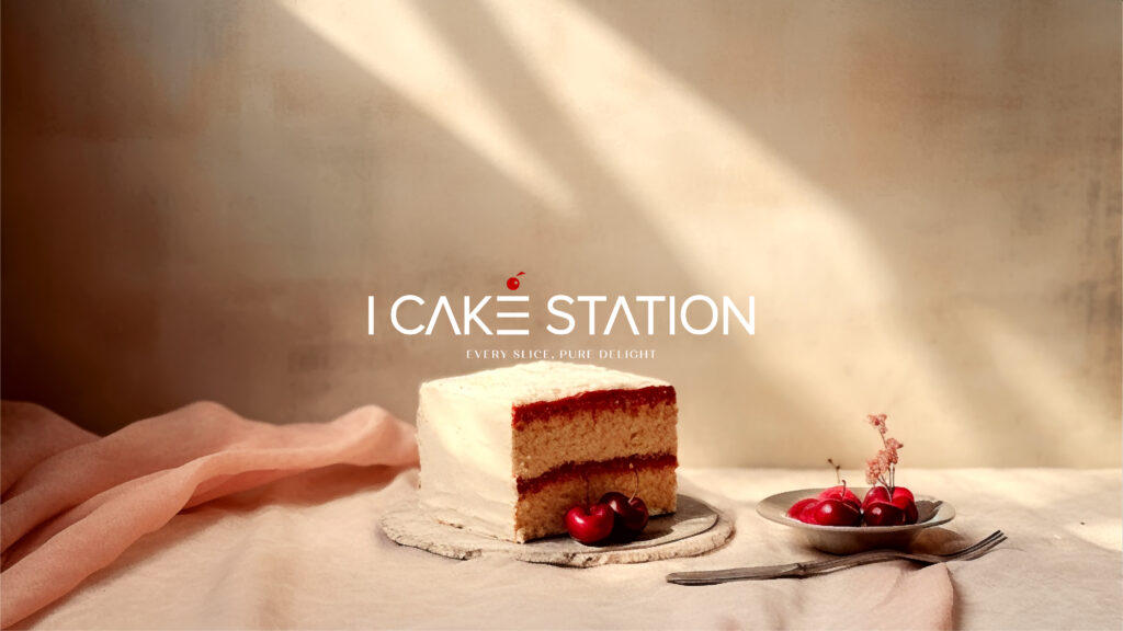 As a distinctive touch, delicate swirls and flourishes gently weave around the cake and brand name. These embellishments symbolize the brand’s dedication to turning ordinary moments into extraordinary celebrations. They also evoke a sense of movement and dynamism, capturing the excitement and anticipation that comes with enjoying a cake from I CAKE STATIONS.