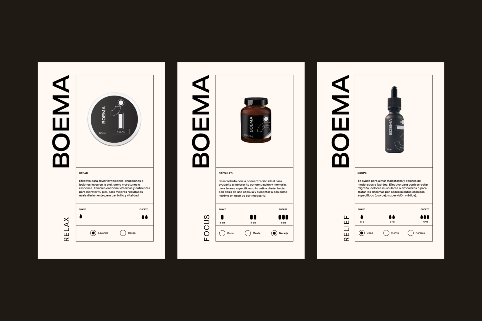 Boema is a CBD isolate product for both men and women to treat insomnia, anxiety and physical pains. The goal for this brand was to create a design that embodied balance and well-being in a gender-inclusive product.