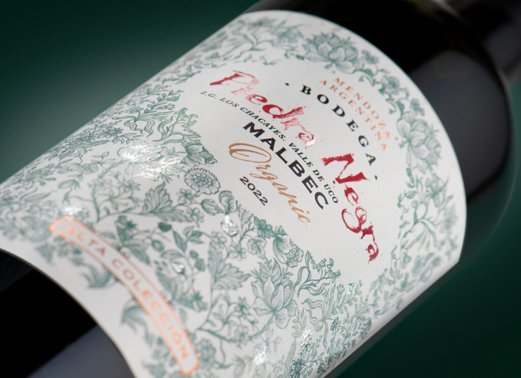 Inspired in the connection with earth and nature, organic vineyards and sustainability Alta Colección by Bodega Piedra Negra convey a sense of tranquility. To reinforce the sustainability of the product the label was printed on Envi paper by UPM Raflatac.