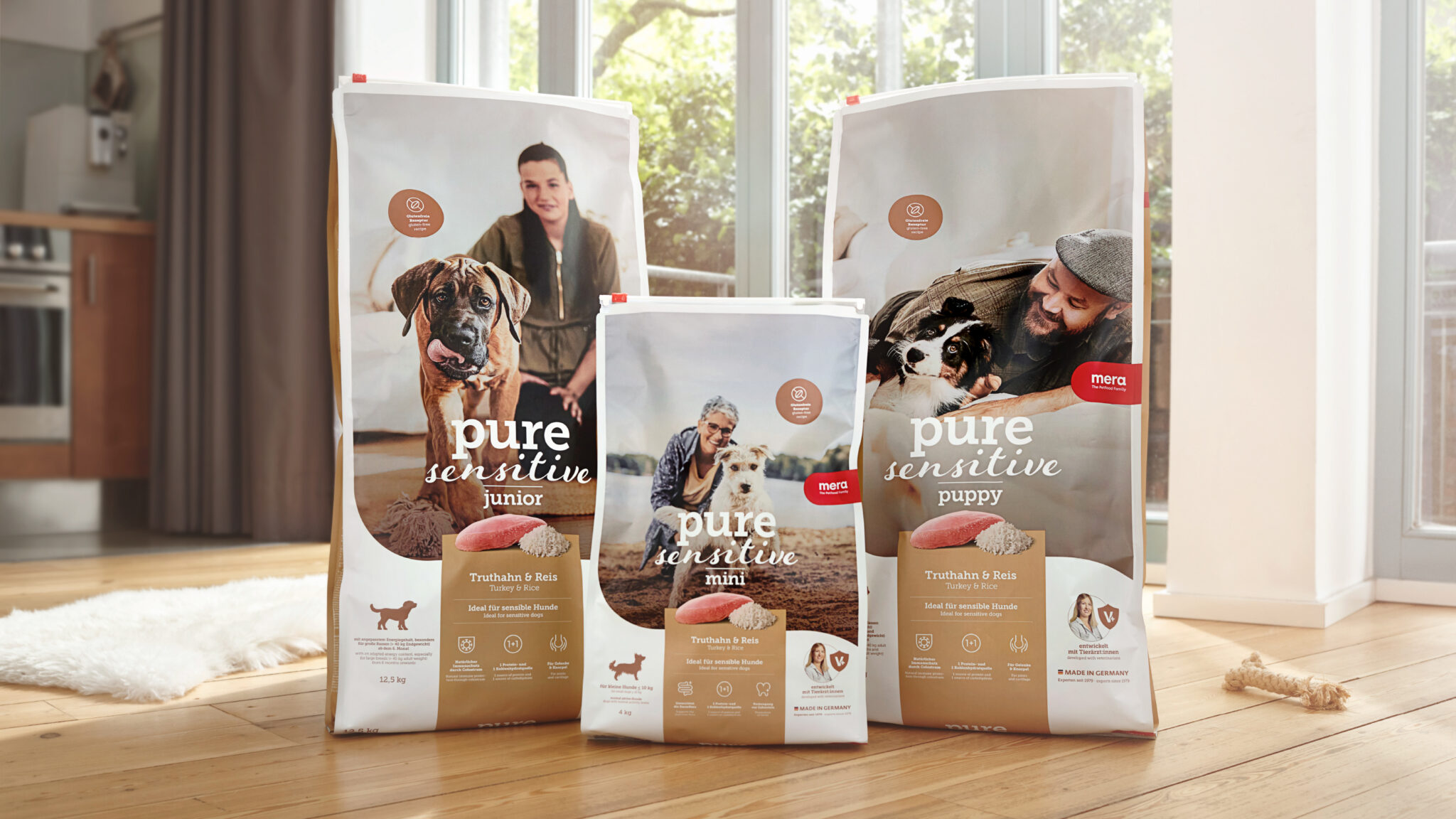 As part of pure sensitive’s new product concept and guided by a customized product and target group analysis, we gave the packaging design a makeover to tell the story and express the product’s quality and authenticity through our design. To do this, we extracted the essence of pure sensitive: the perfect food to give your sensitive dog love and appreciation, so that you can enjoy your time together full of joie de vivre and free of allergies and intolerances.