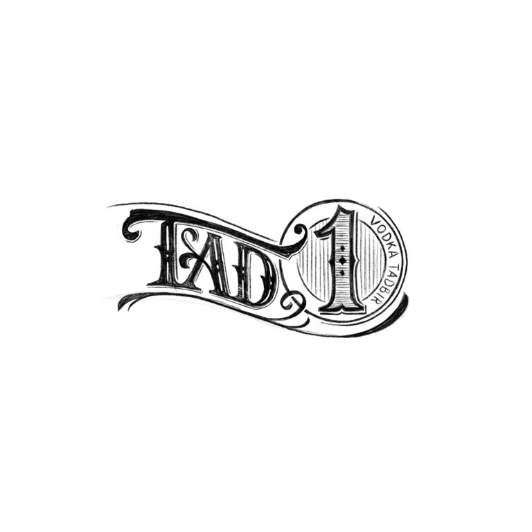 Along with the work on the composition, the typography also continued. Uncertainty was even in the spelling of the brand name. There was a suggestion to divide the name into two parts: the first part should be written in letters and then to put the digit 1 instead of the second part as “Tad1” (1 is spelled “bir” in Azeri). So it became necessary to write the names by hand and to make it easier to pick a choice I simultaneously worked on three options.