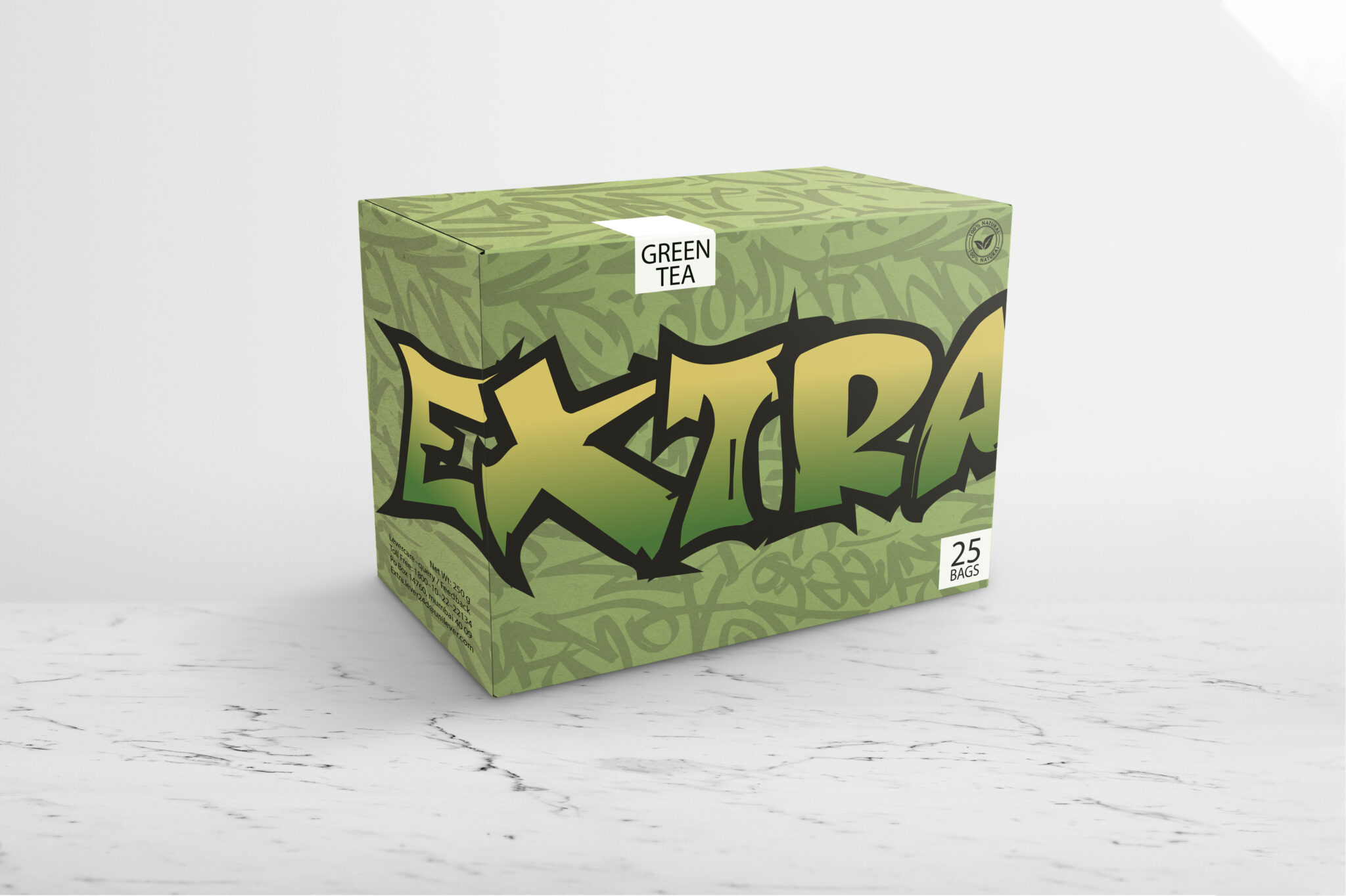 Tea packaging EXTRA Posted on August 18, 2023August 18, 2023 Beverages Tea 25001460 Submitted By: Ehab KO EXTRA – Packaging design for black and green tea in graffiti/Hip-Hop style The packaging’s box contains 25 bags of herbal tea.