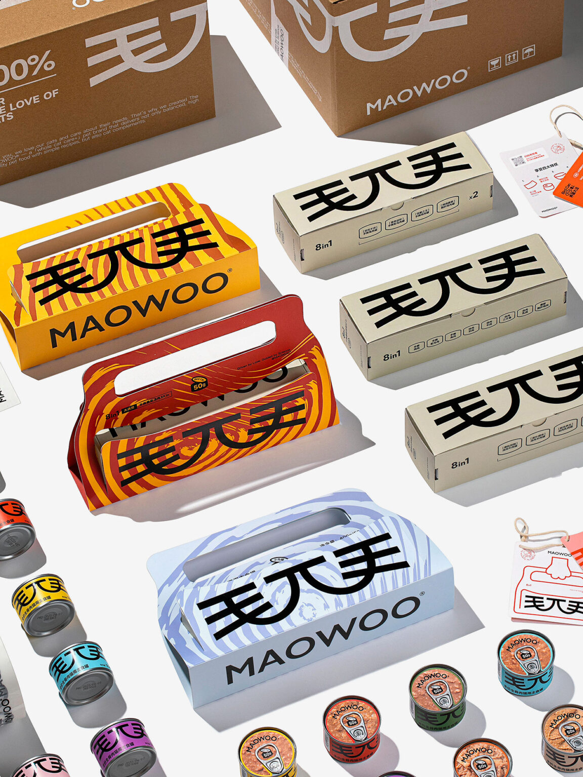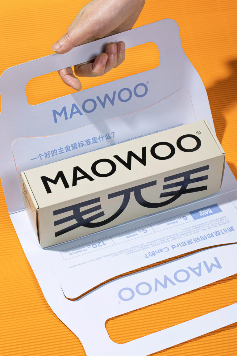 The most brilliant feature of this design is the clever use of the Chinese characters “毛兀” to form the face of a cat, complete with a mouth and whiskers. This creative move achieves several goals: it establishes a strong and direct link between the MAOWOO brand and its target market, which is cat owners; it adds a touch of charm and interest to the brand identity, matching its youthful positioning; and it’s simply adorable, making it unforgettable and shareable.