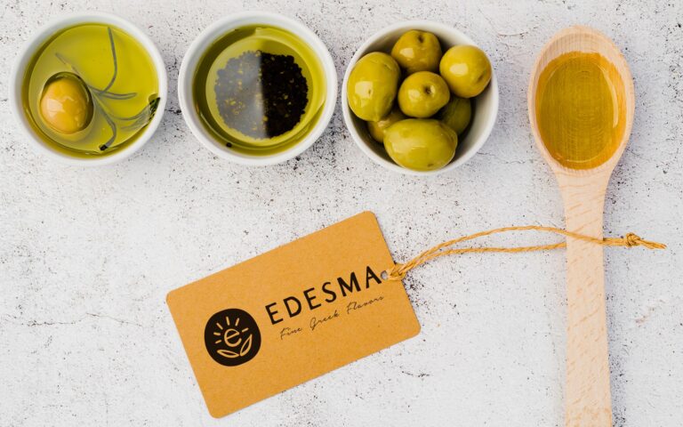 Rebranding (Logo, visual identity and packaging) for Edesma GmbH, a Germany-based company that imports selected Greek food products directly from the source (mainly from the island of Crete) and distributes them through different channels in Germany. Their core product is Cretan olive oil, but beyond that in their assortment they also include spices, juices (pomegranate juice, aloe vera juice), cosmetics, olives, patés, etc.