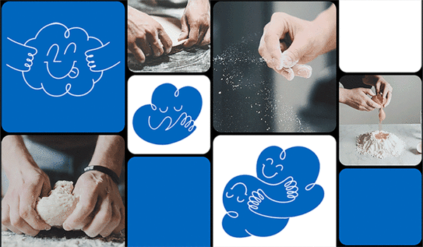 整体设计灵感来源于烘焙甜品本身及烘培学习所传递给人的亲切感,将烘焙制作及食用点心的场景进行融合并进行视觉转化,从而充分专递品牌的核心理念「亲切的烘焙,亲切的你」。并将及结合烘焙多样化场景及产品形态进行视觉艺术化表达变形,从而塑造丰满且立体的品牌基因,与传统烘焙点心品牌拉开差异化。
