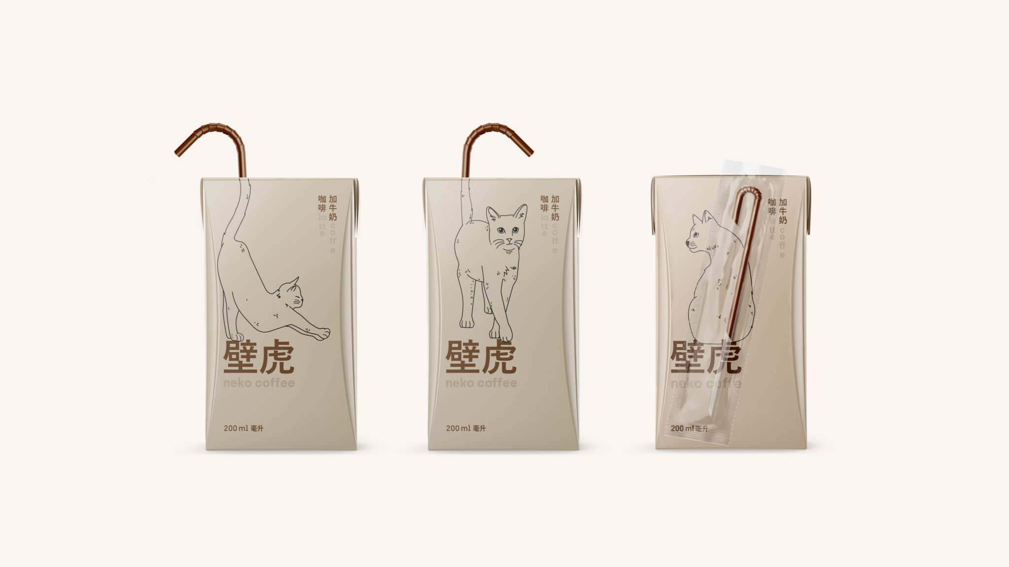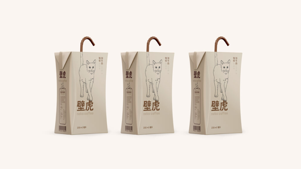 Creation of a takeaway format to sell latte coffee in a NEKO COFFEE (cat cafés, very famous in Asia, where you can interact with cats or just watch them). It will be sold as an impulse product in the checkout area.