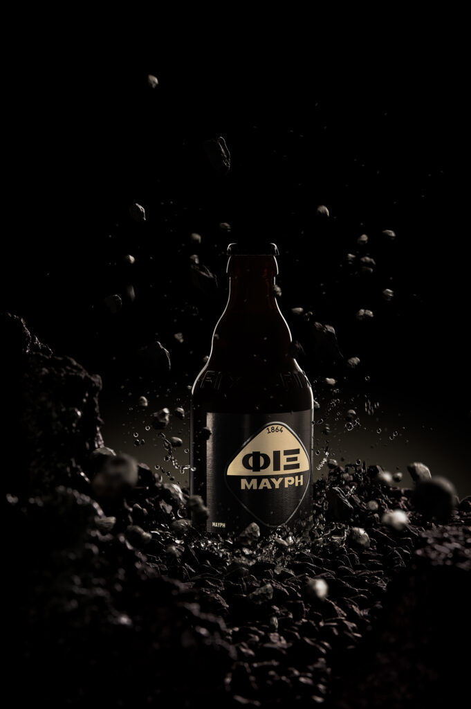 In terms of typography, the design approach of the word “ΦΙΞ“ echoes the brand’s past while the clean lines and smooth curves of the word “Μαύρη” reflect the beer’s smoothness. The color palette we developed enriched the previous one, drawing inspiration from the beer’s dense, creamy foam.