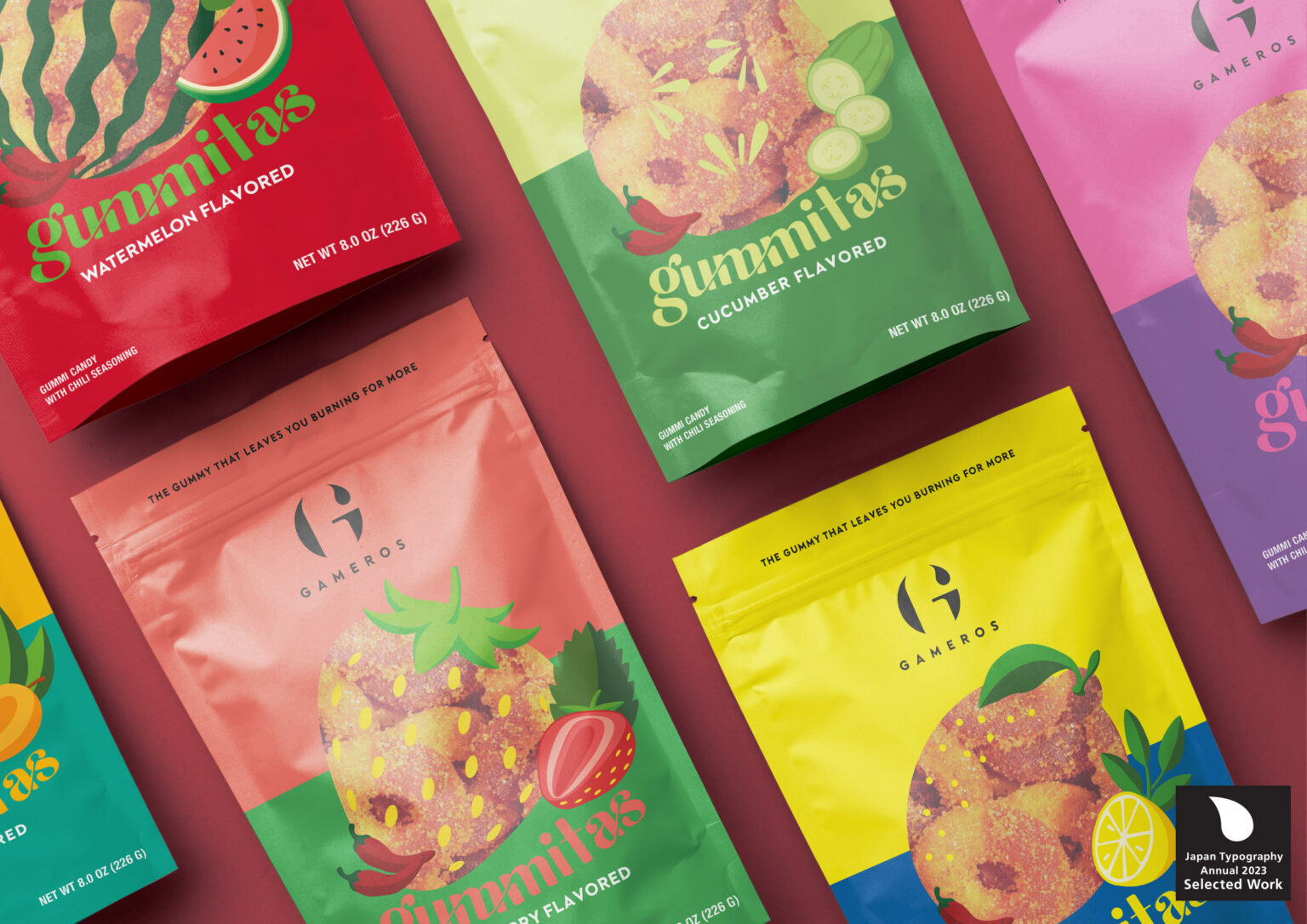 Gameros, a candy brand from Mexico, is launching traditional candies in a relaxed and lively style. Adapting the passionate tone of Mexico, it created a brisk and relaxing brand personality, combined with simple graphics, without any sense of disobedience and product integration. This will convey infinite joy to everyone who enjoys the pleasure of candy.