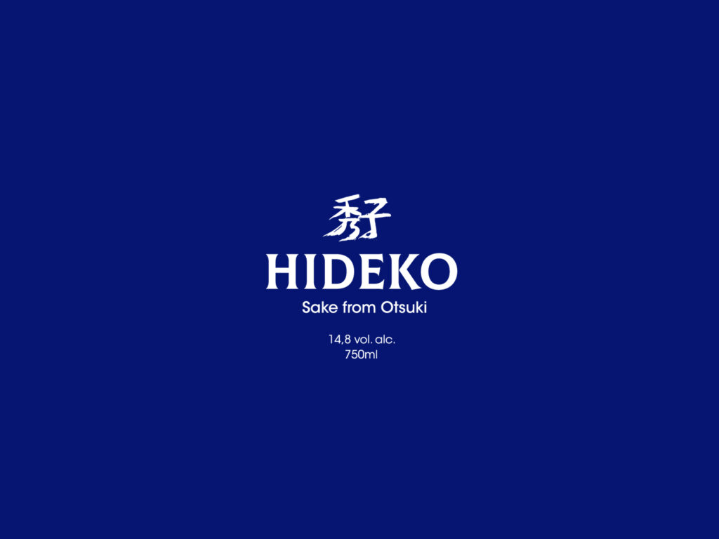 The graphic work on the label was undertaken in two phases. The free spaces left by the undulating shapes of movement over the glass express the desire to bring together the distinctive coat of arms of the city of Otsuki, in the upper section, with the attributes of the Hideko brand in the lower section.