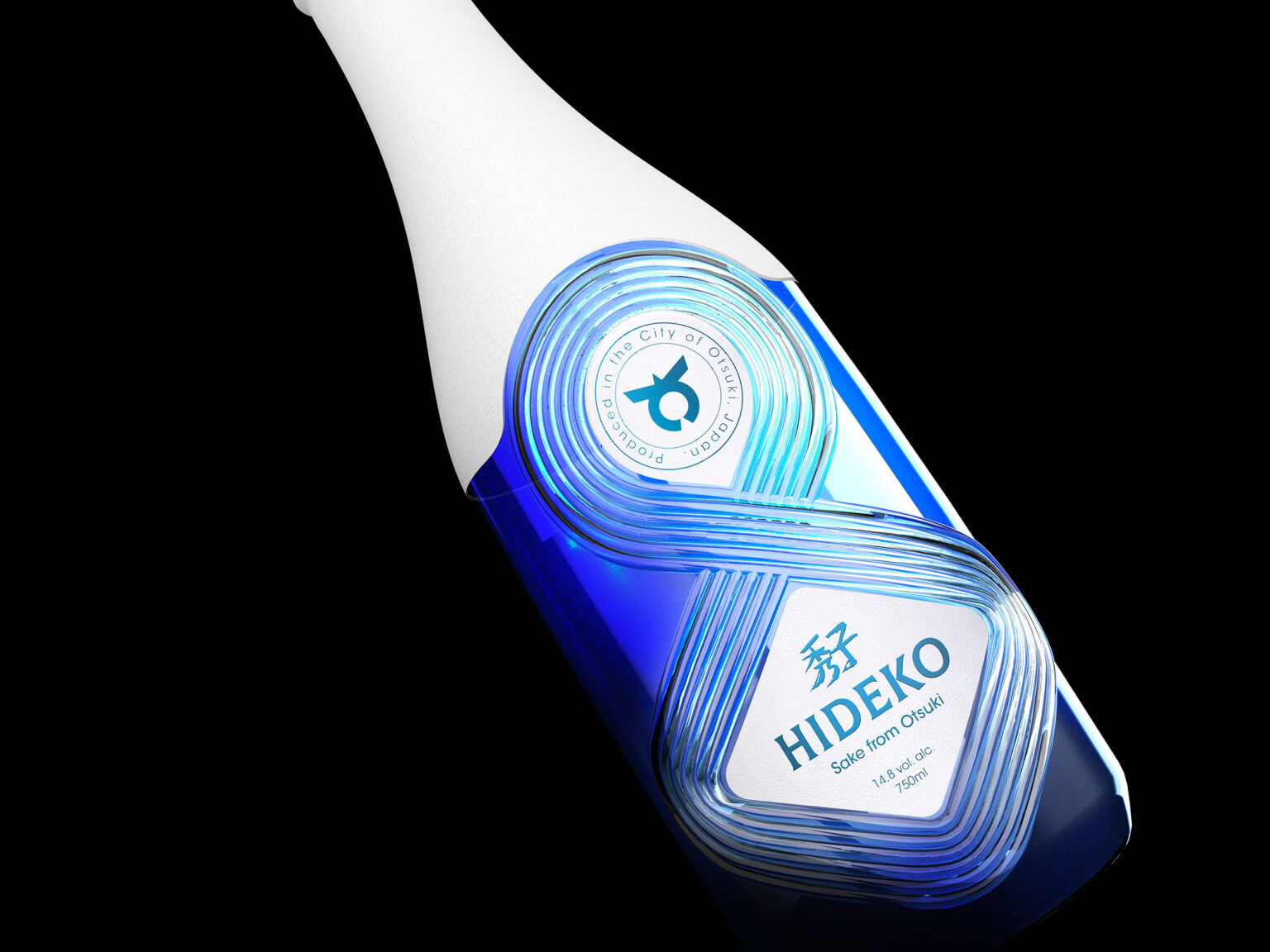 Global design concept for a Japanese sake bottle for the HIDEKO brand including the creation and graphics of two labels and the design of the sake bottle.