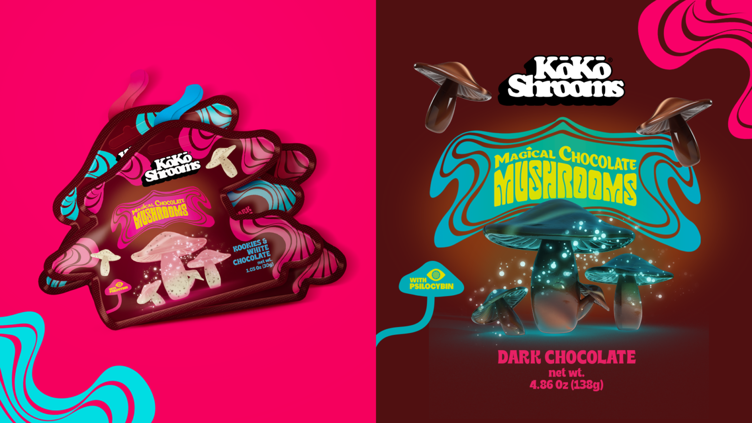 With the creative concept of a unique and captivating sensory journey, its packaging is a portal to a universe of vibrant colors and mesmerizing appetite, while fluid shapes represent the creamy texture of chocolates while reproducing psychedelic waves, each chocolate mushroom is a door for imagination, inviting each individual to become the hero of their own journey, after all, imagination is the most powerful tool to create unforgettable moments!