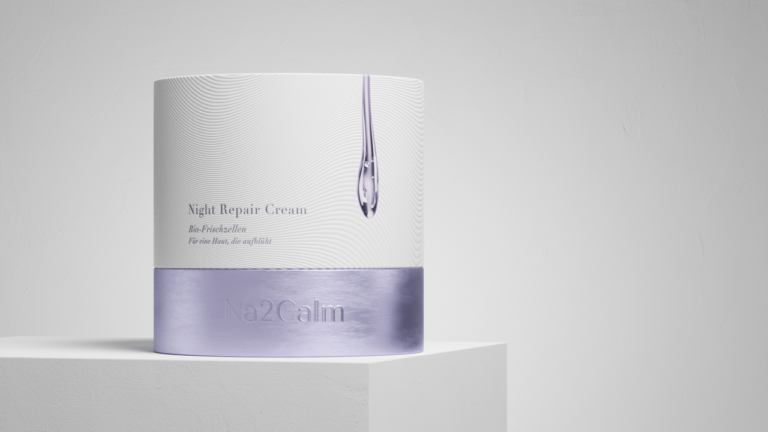 The fictional packaging concept for Na2Calm is our design vision of luxury care in a clinical context: reduced to just the essentials, the design suggests efficiency and concentration of active ingredients. Because the new luxury is the opposite of overabundance.