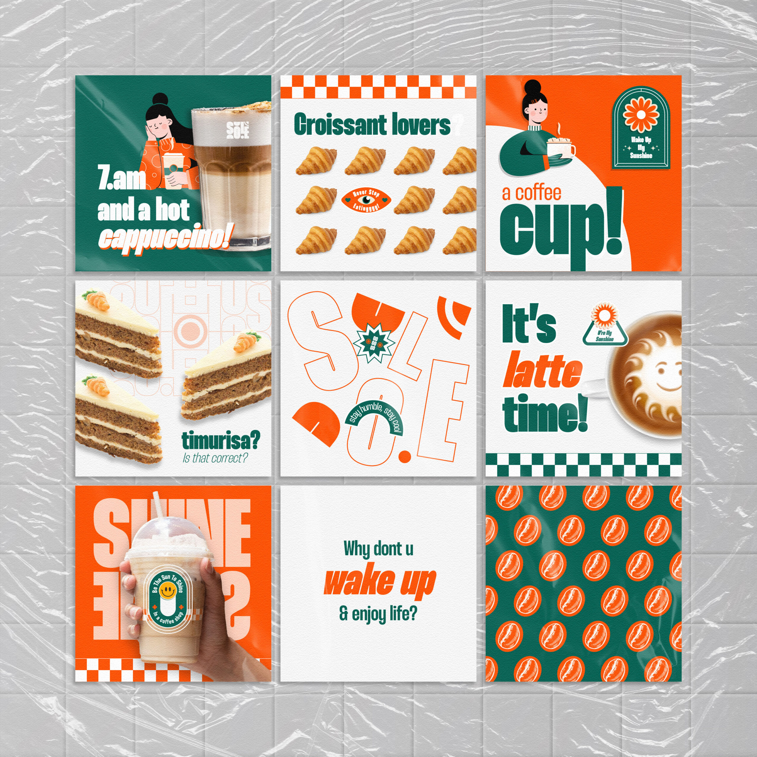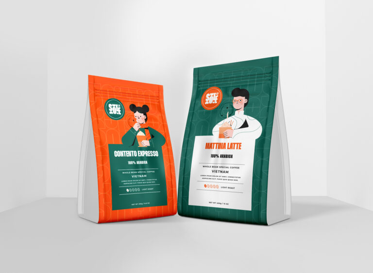 We’ve solved the problem of brand colors quite well. When we don’t use colors Traditionally, we instead use colors from the nature of the terrain here, the symbolic orange The sun refers to the beginning of the day for young people, students, and working people. Green symbol of trees, mountains, and forests because Da Lat’s terrain is mainly forests and hills, bringing with it cold air As for the Logo, we use the letter mark logo form, which is simply the brand name displayed and a stylized sun symbol. As for packaging, we have paper coffee cups, coffee packaging, and storage bags. With a simple design with illustrations of people combined with stylized typefaces, it creates surprise, attracts tastes, and is unique and distinctive in the eyes of customers.