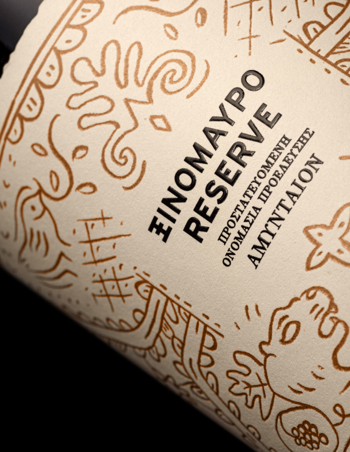 Lidl supermarkets asked our help to launch a “Xinomavro” PDO Amyntaion (Greece): a red wine of rare taste, long-aged wine in oak barrels with rich aromas and flavor richness. It’s positioned as a premium choice at an affordable price on Lidl’s shelves, aiming to attract wine lovers and quality seekers. “We need a unique label design with stopping power to express an outstanding wine.”