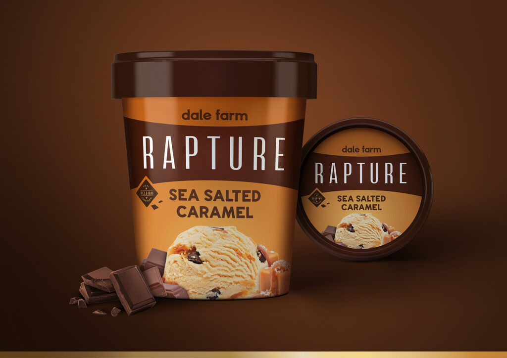 Dale Farm’s Rapture ice cream bars are their most indulgent… and a brand with a heart full of goodness. This range of deliciously creamy dairy ice cream bars are wrapped in the finest thick Belgian chocolate, and are made with the most indulgent of ingredients. The new ice cream tub NPD packaging design needed to clearly reflect the existing brand values.