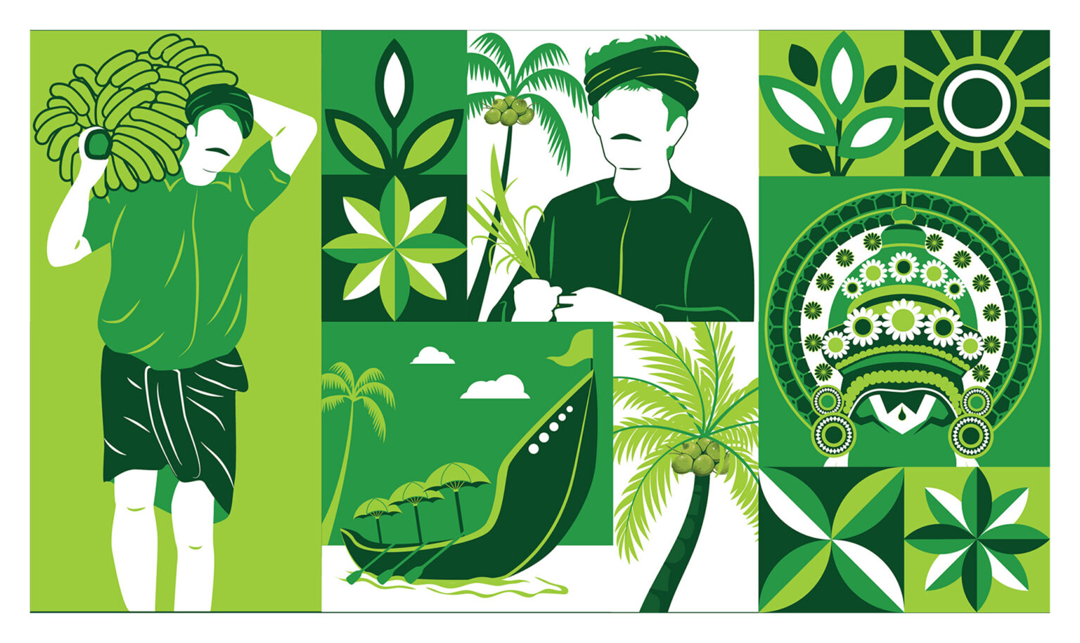 My concept was creating a Unique “Mosaic Pattern” composed of several graphics symbolic of the product and brand (Plants, Indian farmers, Sun, Coconut tree, Flowers…), and using a Green color scheme as a symbol of the “Natural & Organic” product.