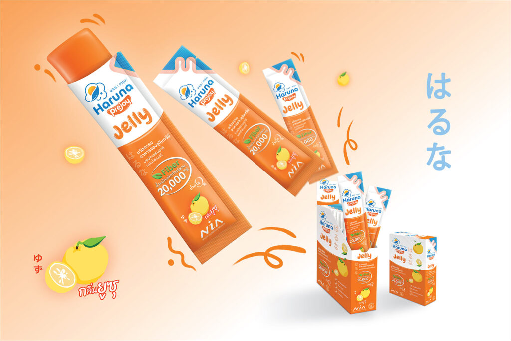 Idea: Revamp graphics for a gel-like product with playful, dimensional elements. Vibrant colors and Japanese-inspired fruit illustrations create an eye-catching, appetizing look. Introducing “Haruna PREJOY” continues the Japanese aesthetic.