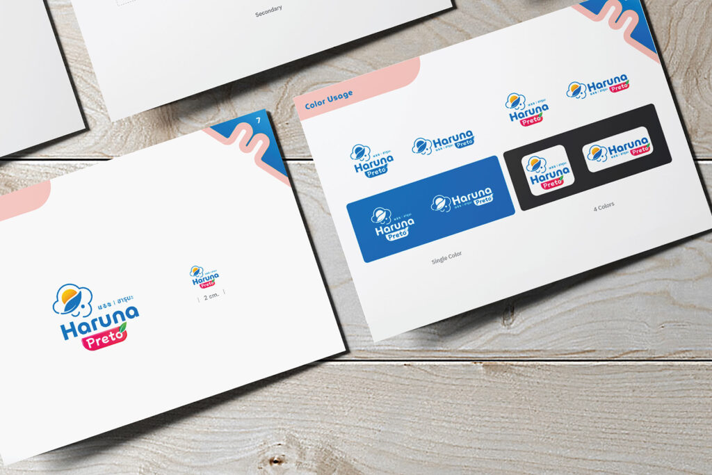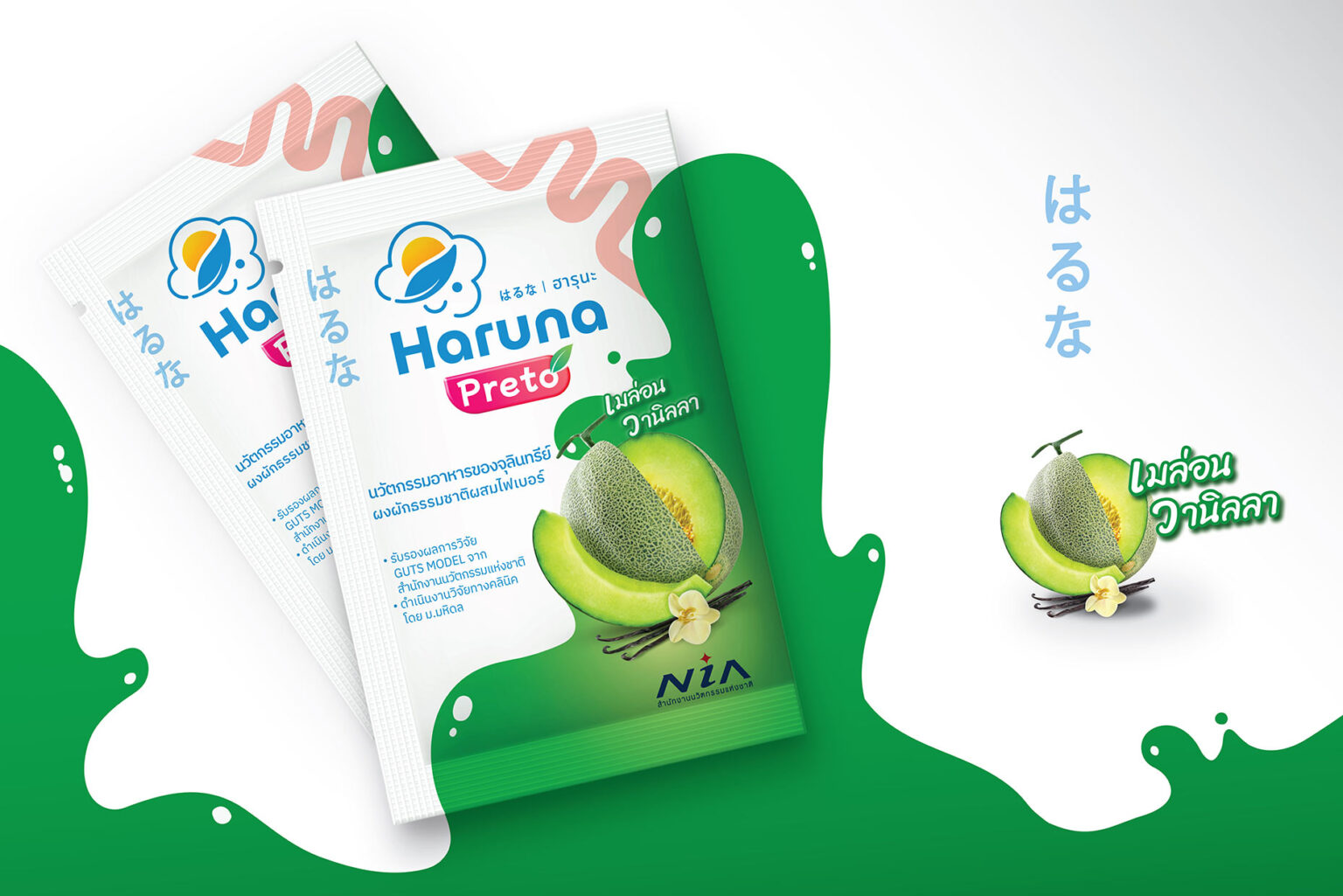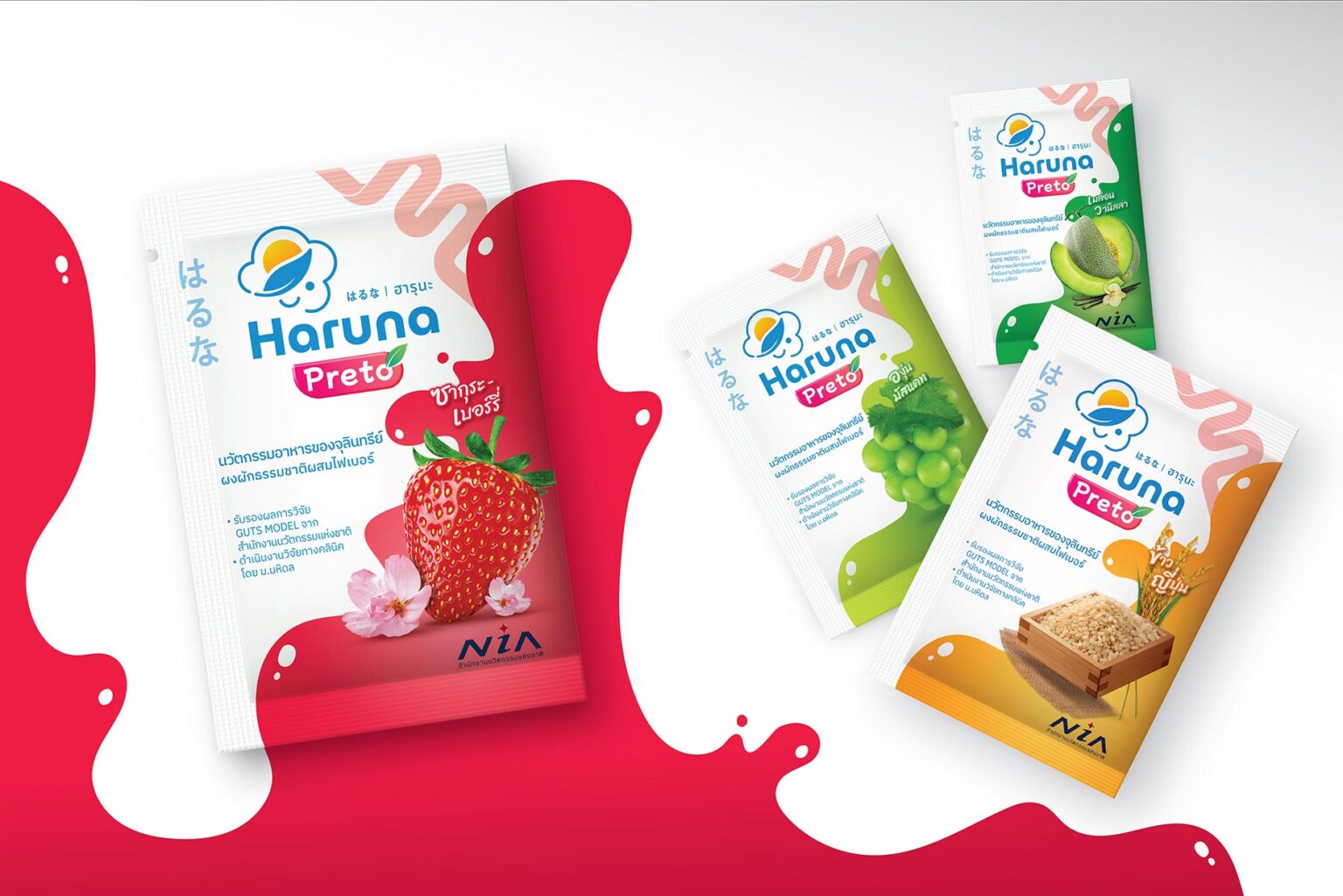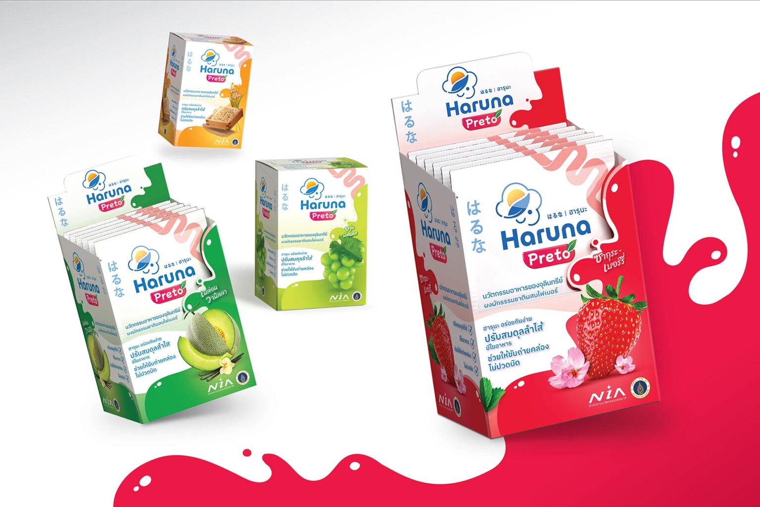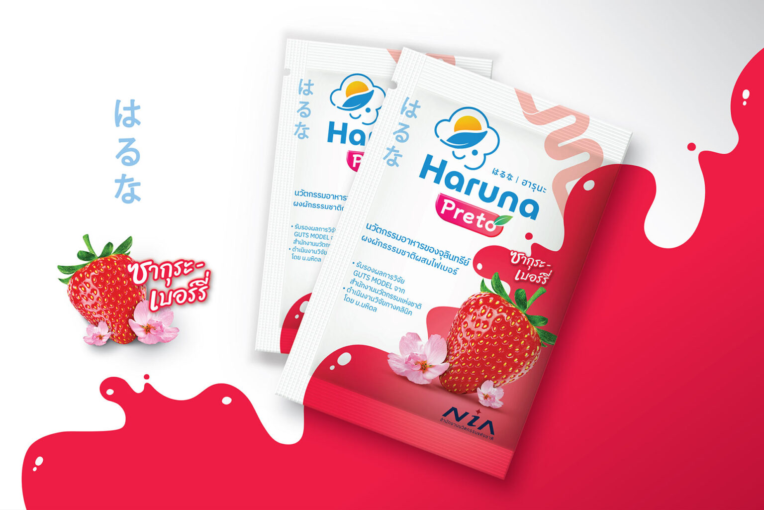 Idea: Our design journey begins by creating fluid and engaging graphics resembling water splash, emphasizing the fun aspect, using vibrant colors, and showcasing images of various fruit flavors and ingredients that are visually appealing and tempting. Haruna PRETO operates under the same brand identity as HARUNA, ensuring consistent quality, but with a stronger focus on ease of consumption, improved flavors, faster results, and a clear distinction between flavor options, all while staying true to its Japanese heritage.