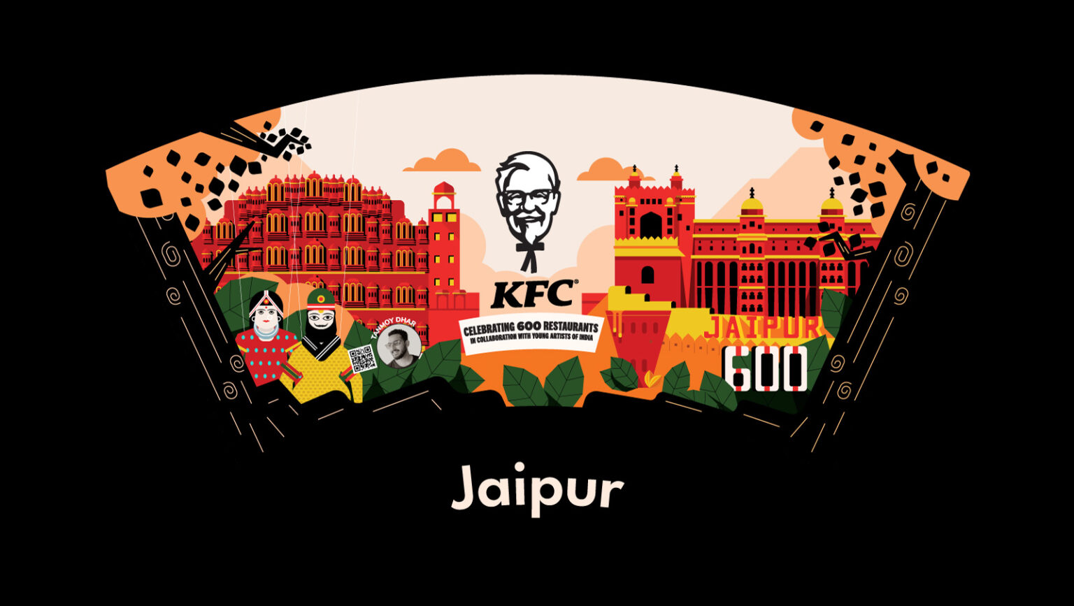 KFC, the client, approached us with a truly unique task — none other than commemorating KFC’s outstanding milestone of 600 stores across India. They presented a challenge: a call for a creative solution that would transcend the ordinary, transforming the iconic chicken buckets into distinctive canvases that encapsulate the very essence of Jaipur, Darjeeling, Cuttack, and Coochbehar.