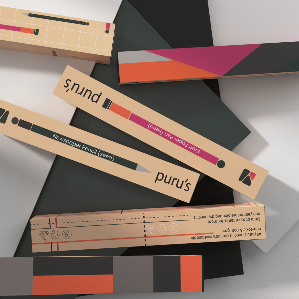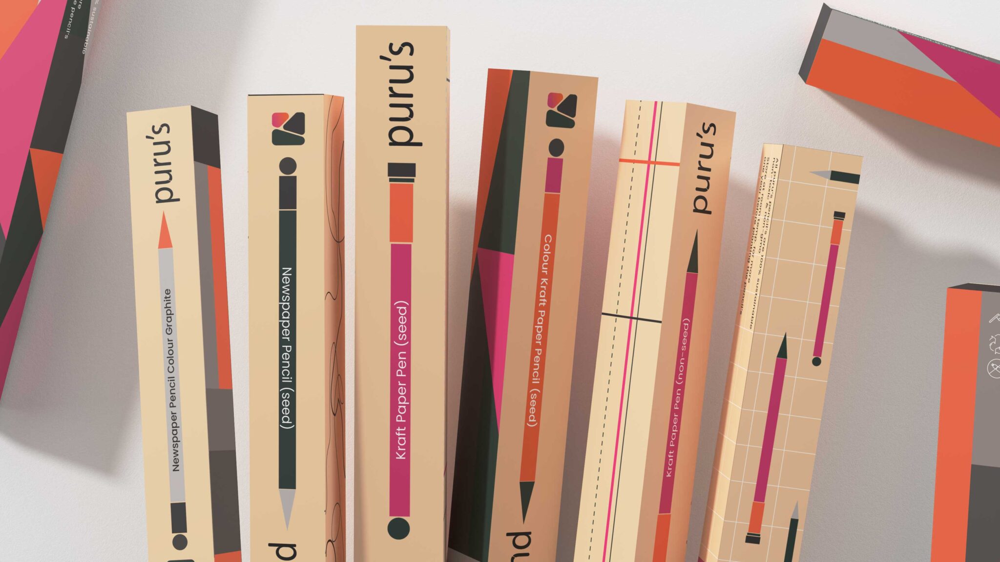 The Packaging design for Puru’s is inspired by playfulness with variations for the different categories of sustainable stationary products, sustainable pens & pencils. The designs of the packaging represent the products inside them, from minimal formals for adults to scribble art for kids, we value and understand the needs