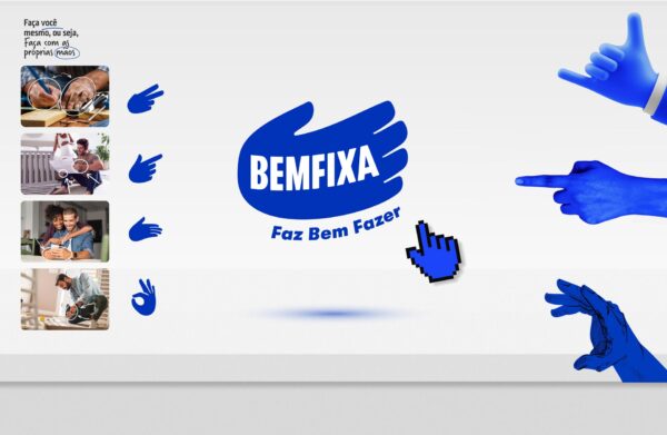 The new Bemfixa brand reinforces important concepts such as being a specialist and experienced, but with an eye on the future, seeking and sharing what is new and modern in its segment. A contemporary brand adapted to the demands and challenges of its time. It’s fun and friendly, embraces creativity, and encourages consumers to explore unique solutions. Bemfixa’s hand is dynamic and was born to have movement. These movements reinforce the recognition we seek as “the blue hand mark”.
