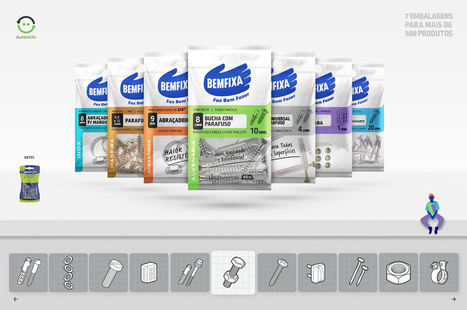 Bemfixa is a reference in the do-it-yourself segment. For years, it has built a solid history in B2B, and our challenge was to strengthen the relationship with the end consumer. Through research, we seek to understand the purchasing journey to offer a unique experience, engage the consumer, and enable them to carry out projects with their own hands. Going through brand and portfolio architecture, we defined three pillars: build and install, organize and facilitate, and create and decorate, and thus simplified this journey. From the simplest to the most inspirational products, the brand redesign brought a moving hand, and the positioning “FAZ BEM FAZER” (It’s good to DIY) was an affirmation and encouragement, showing that there is a reward in the act of doing things with your own hands.