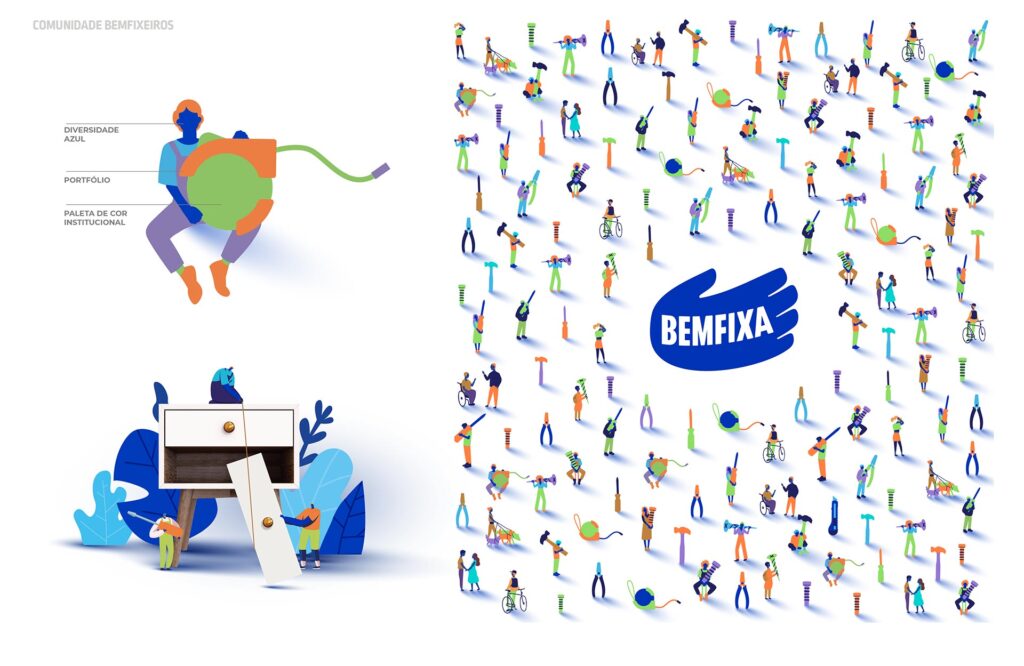 The Bemfixa brand strategy project reinforced important concepts such as being a specialist and experienced, but with an eye on the future, seeking and sharing what is new and modern in its segment. A brand adapted to the demands and challenges of its time. Its new verbal and visual identity is fun and friendly, embraces creativity, and encourages consumers to explore unique solutions. A line of hardware that gained personality, an iconic brand, didactic and impactful packaging, and rich communication full of graphic elements, including the creation of its own characters that interact in a playful way with the products, the bemfixeiros (DIYers)