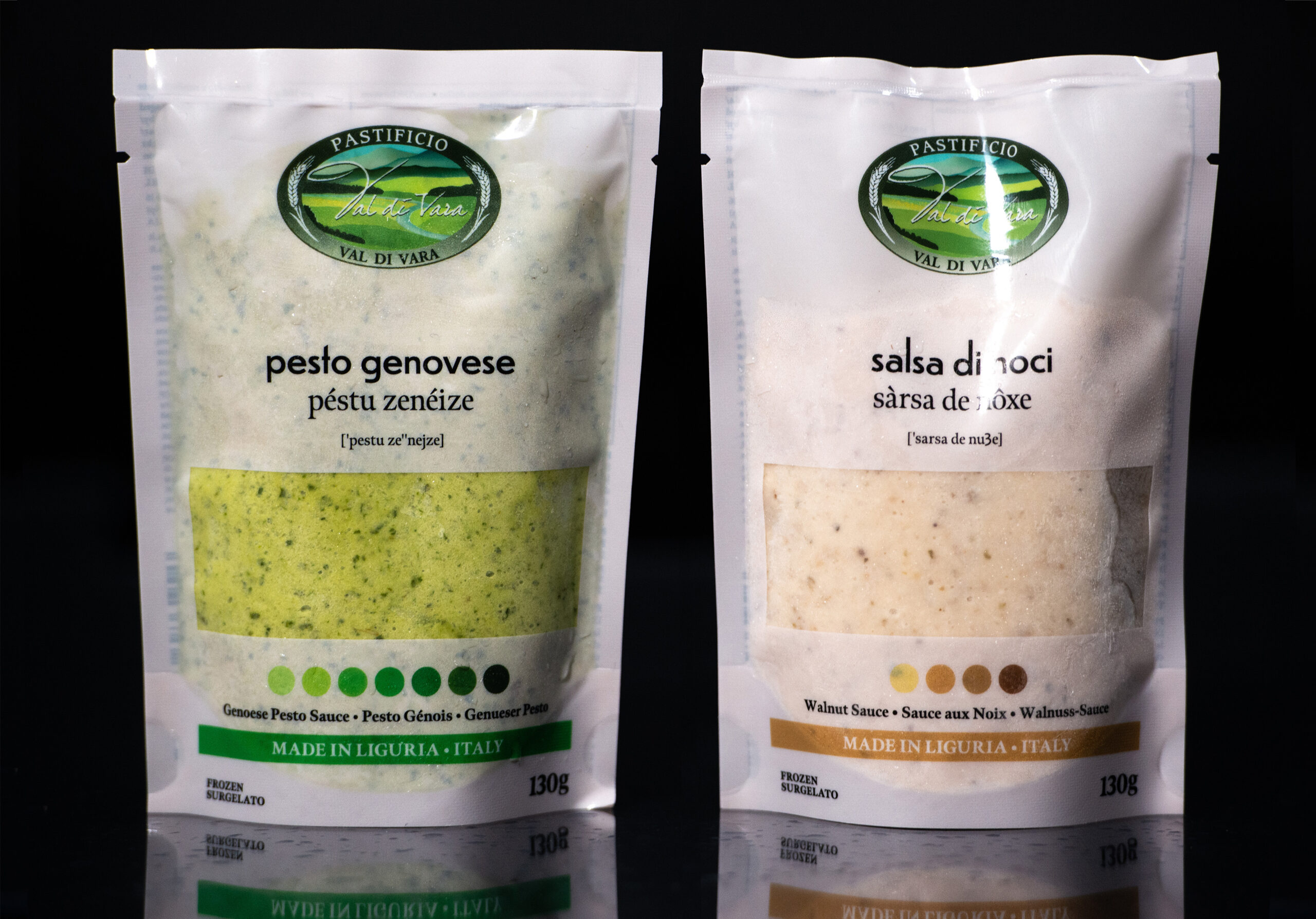 It is a packaging for high quality Italian products, P.A.T. certified. (Traditional Agri-Food Product); Genoese pesto, a globally recognized treasure, and Ligurian walnut sauce, a UNESCO intangible heritage, represent the quintessence of Liguria.