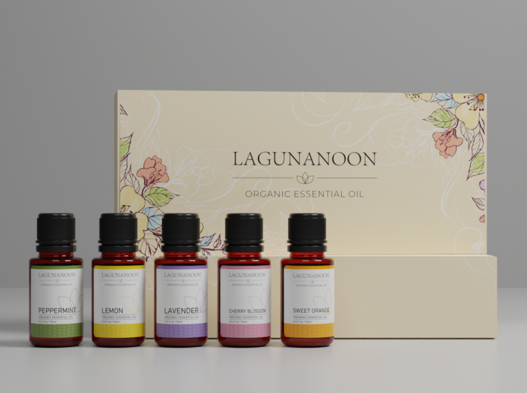 The packaging includes clear labeling that highlights the oil’s organic nature, its therapeutic benefits, and usage instructions, ensuring an informative and visually appealing presentation. With its harmonious blend of nature-inspired elements and eco-conscious materials, our packaging embodies the essence of our organic essential oils, inviting you to experience the power of nature in every drop.