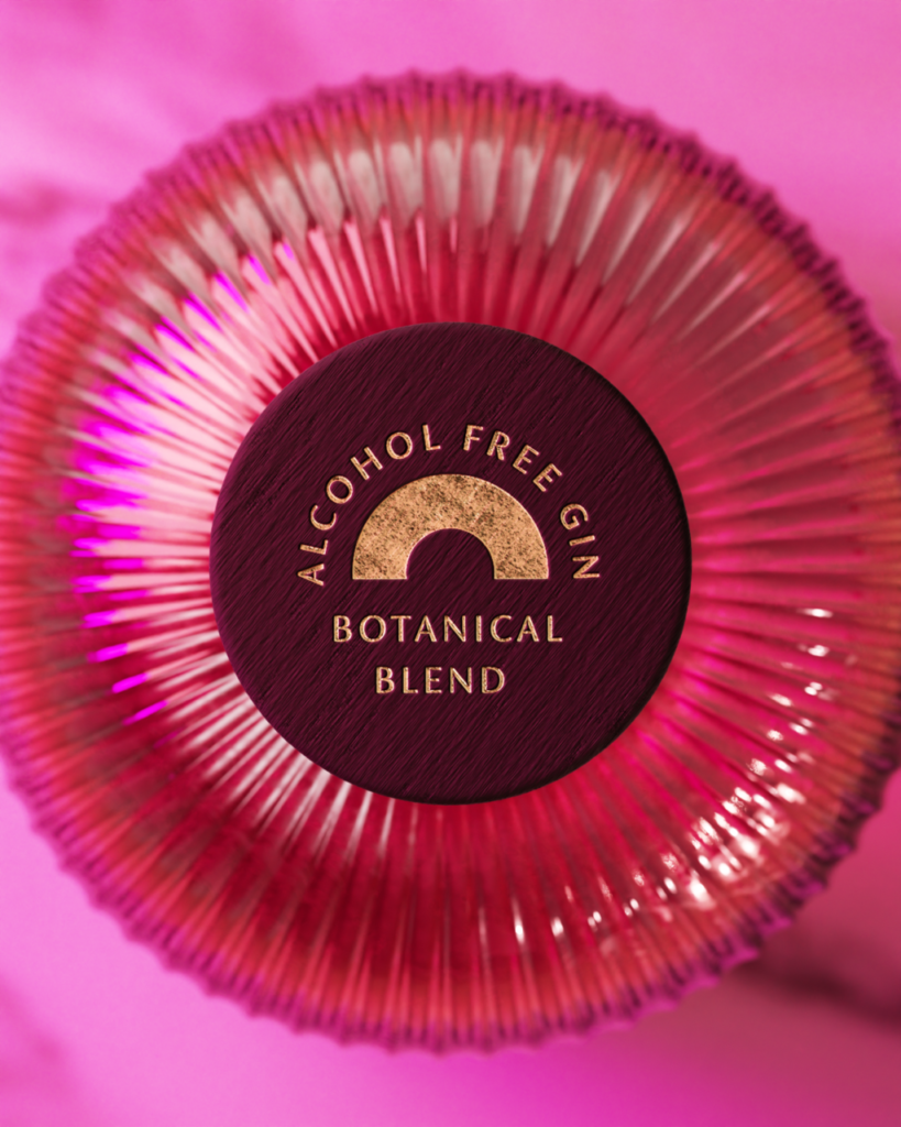 The fluted glass bottle of the non-alcoholic gin taps into current interior design trends and refracts light like a swimming pool in high summer.