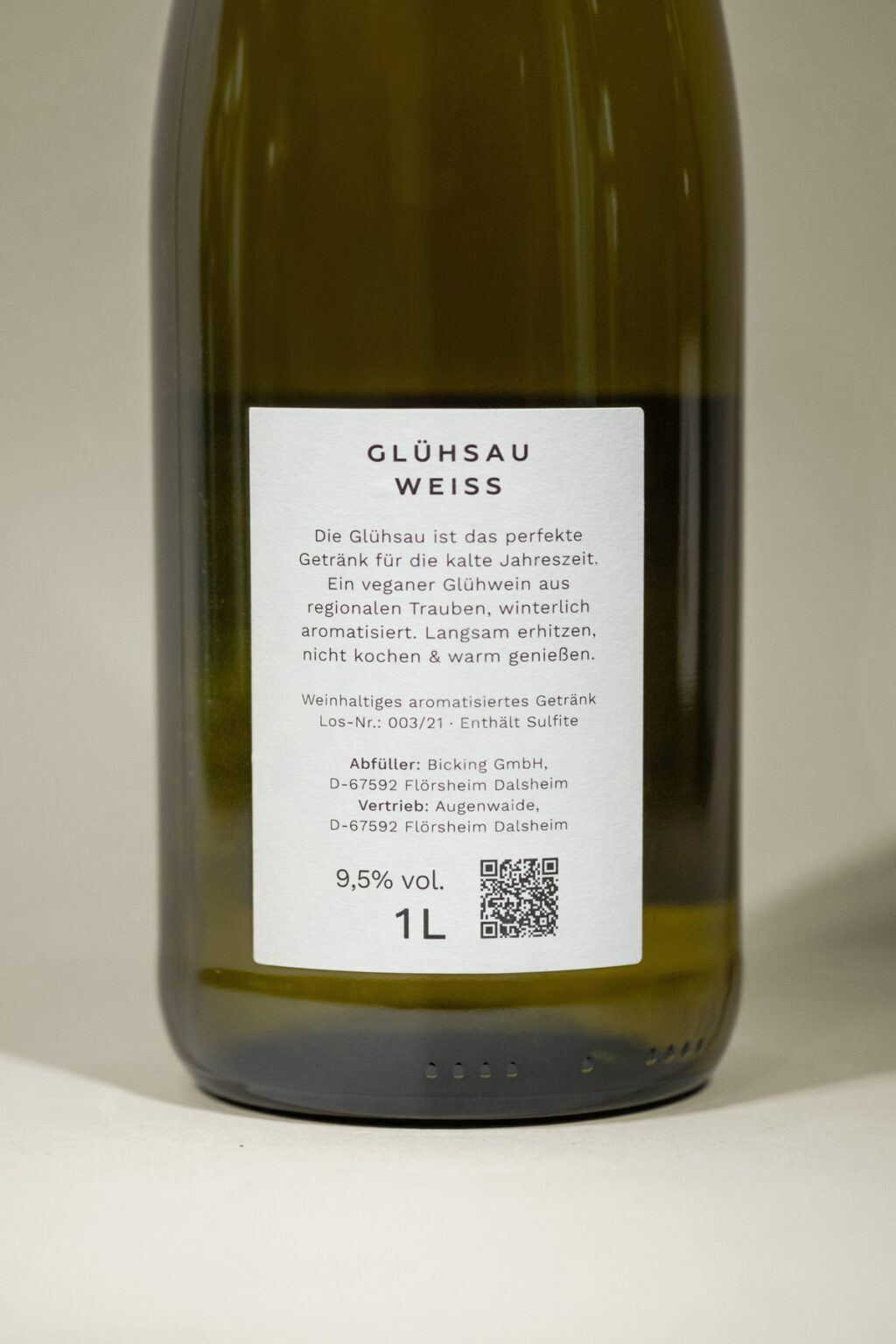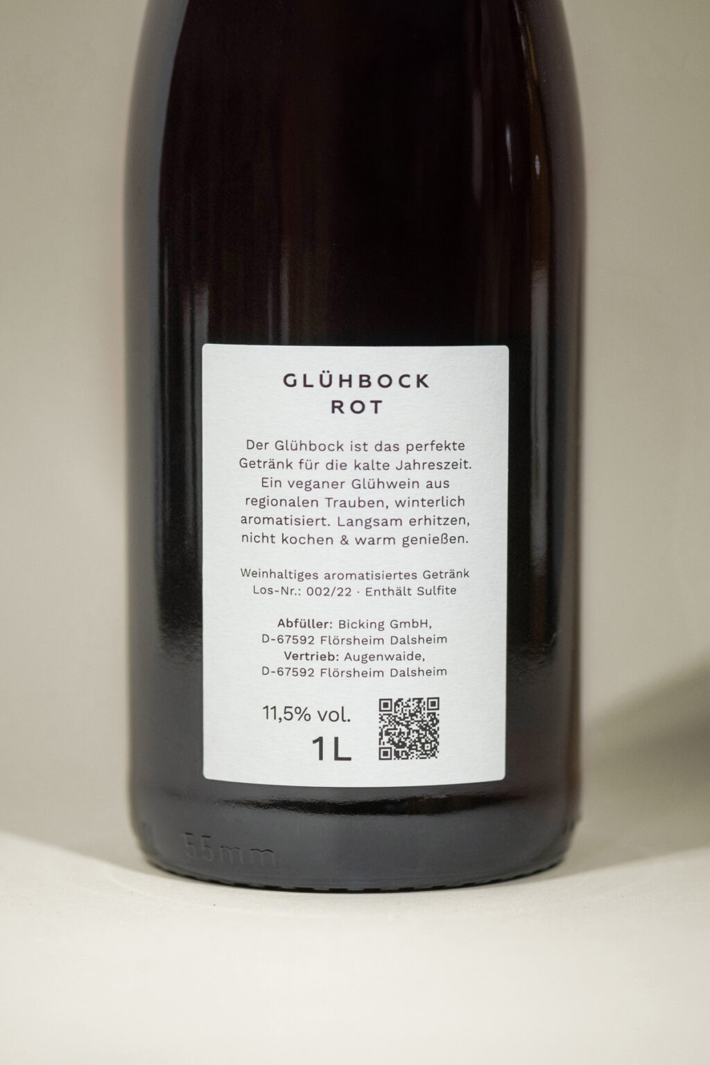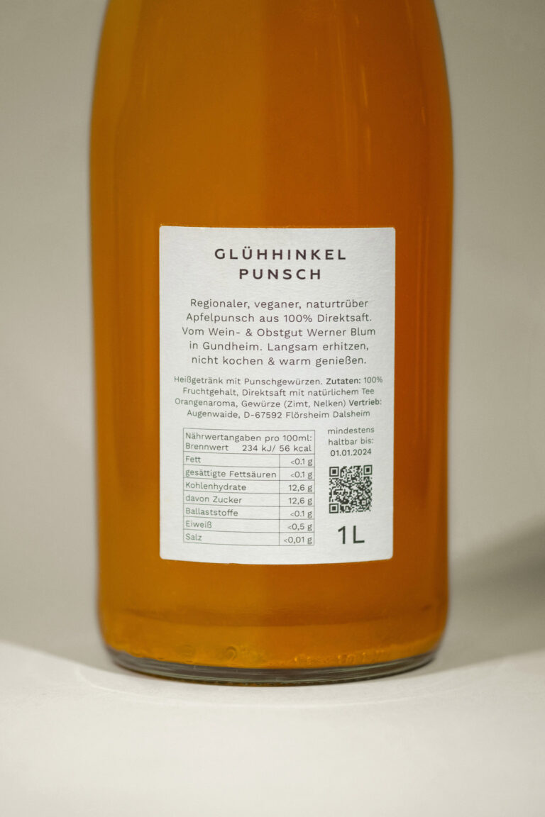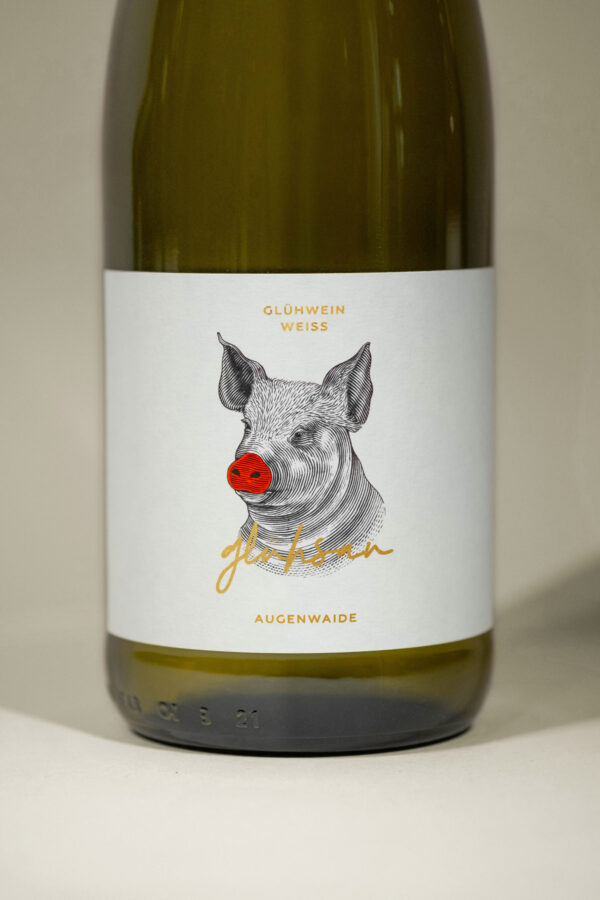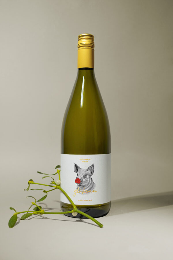 The bottles show the animals of the Augenwaide in drawing style with a classic red Rudolph Christmas nose. Each animal stands for a mulled wine or punch. To bring the regionality more into focus, the animals were written in the Palatine dialect: Glühsau – white mulled wine, Glühbock – red mulled wine, and Glühhinkel – non-alcoholic children’s punch. The mulled wine can be enjoyed or purchased at Augenwaide in Flörsheim-Dalsheim.