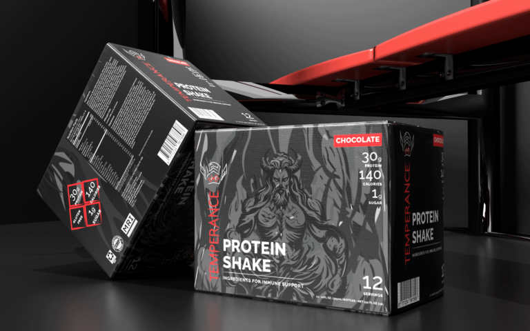 The design’s goal was to create compelling imagery appealing to active gymgoers and workout enthusiasts. The minimal color scheme of only red and a few shades of grey was used to maintain a focused and serious look, making the viewer feel important and respected. The bright red pops out from the greyscale illustrations making it easy to identify on the shelves.