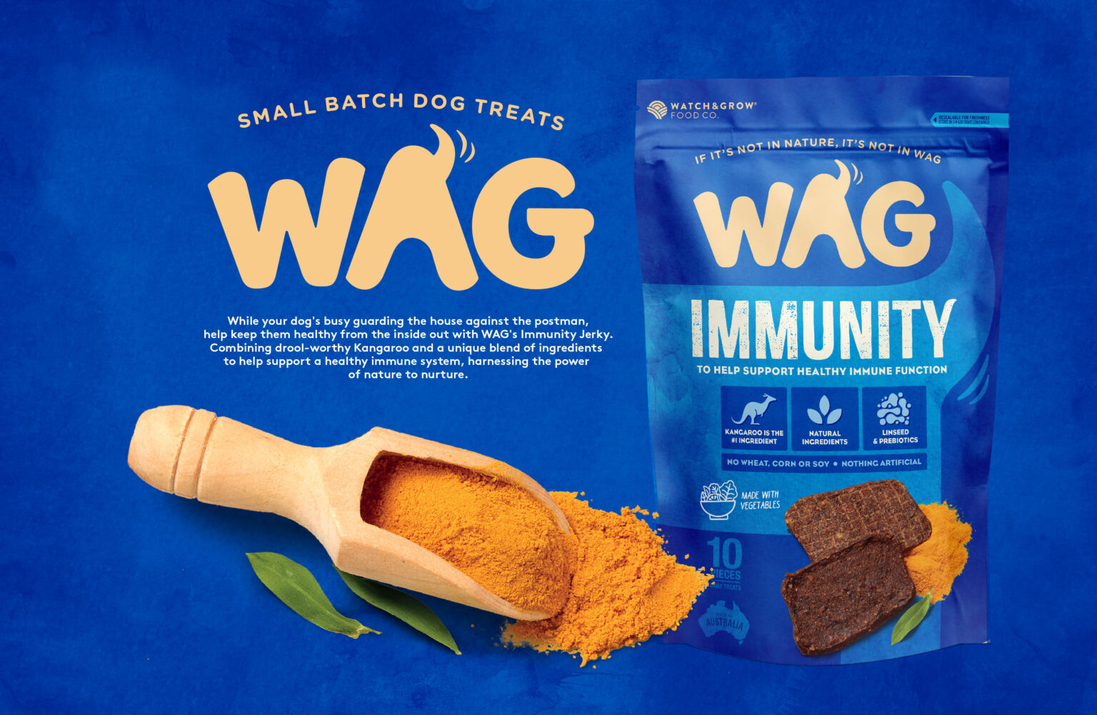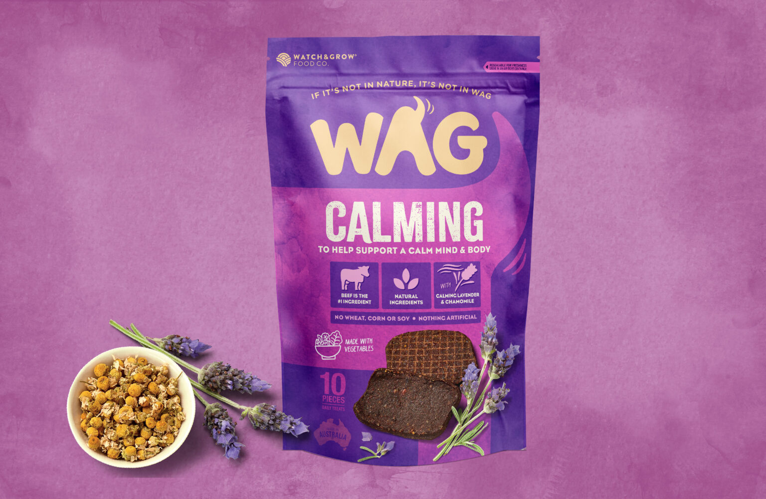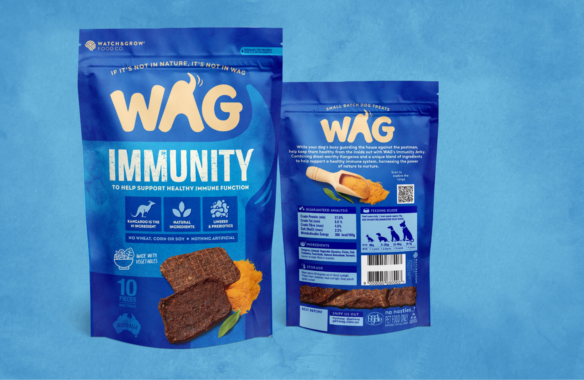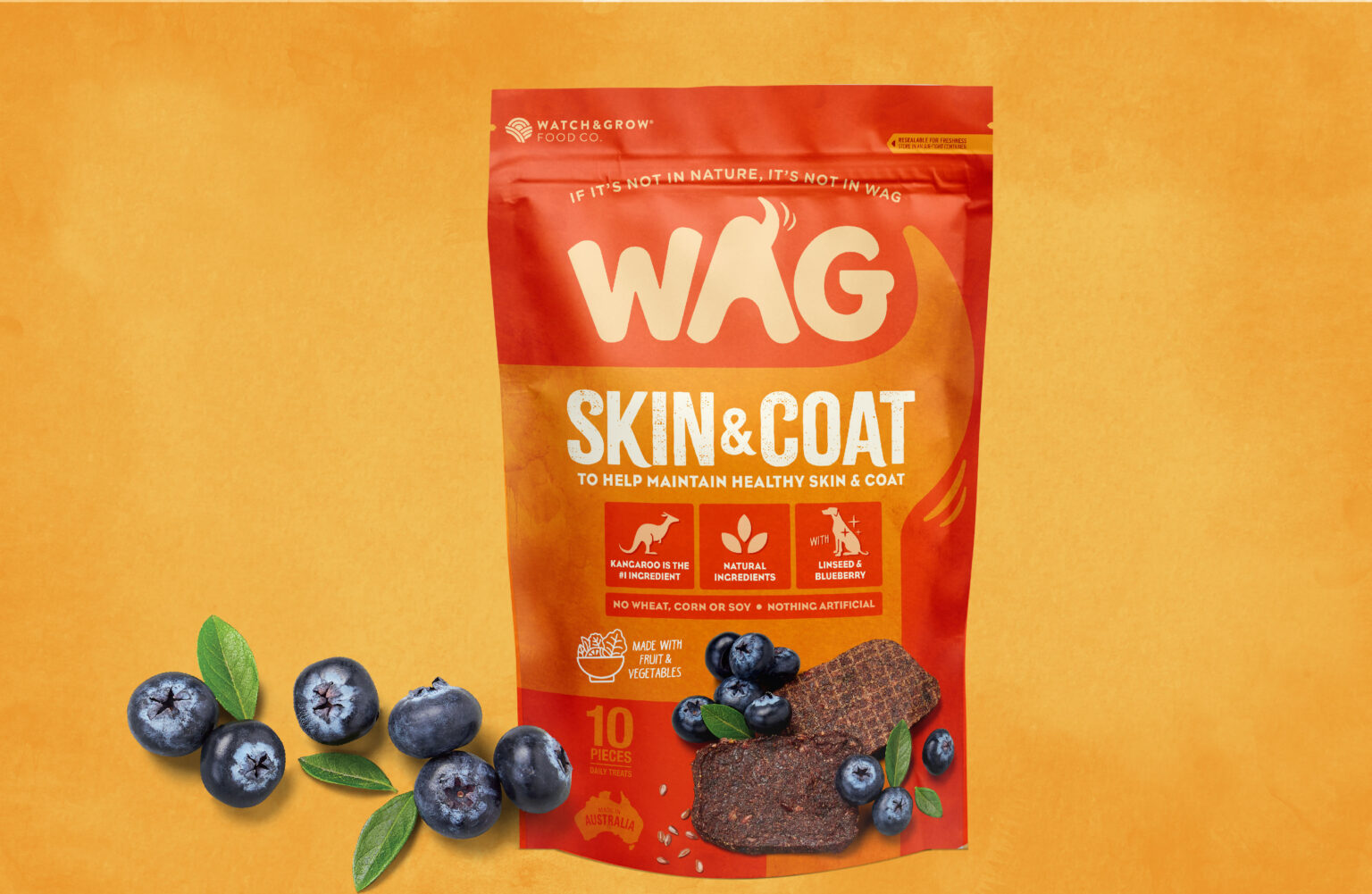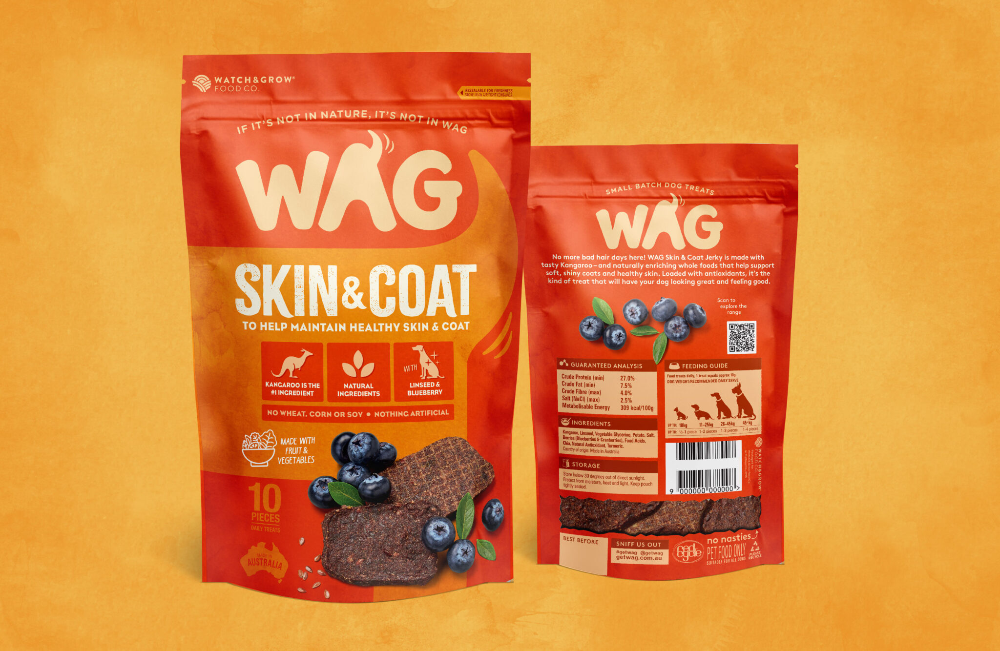 Very much akin to premium human snack pack designs in look and feel, the WAG range now sits happily in the shopping trolleys and online carts of a growing number of discerning dog lovers nationally.
